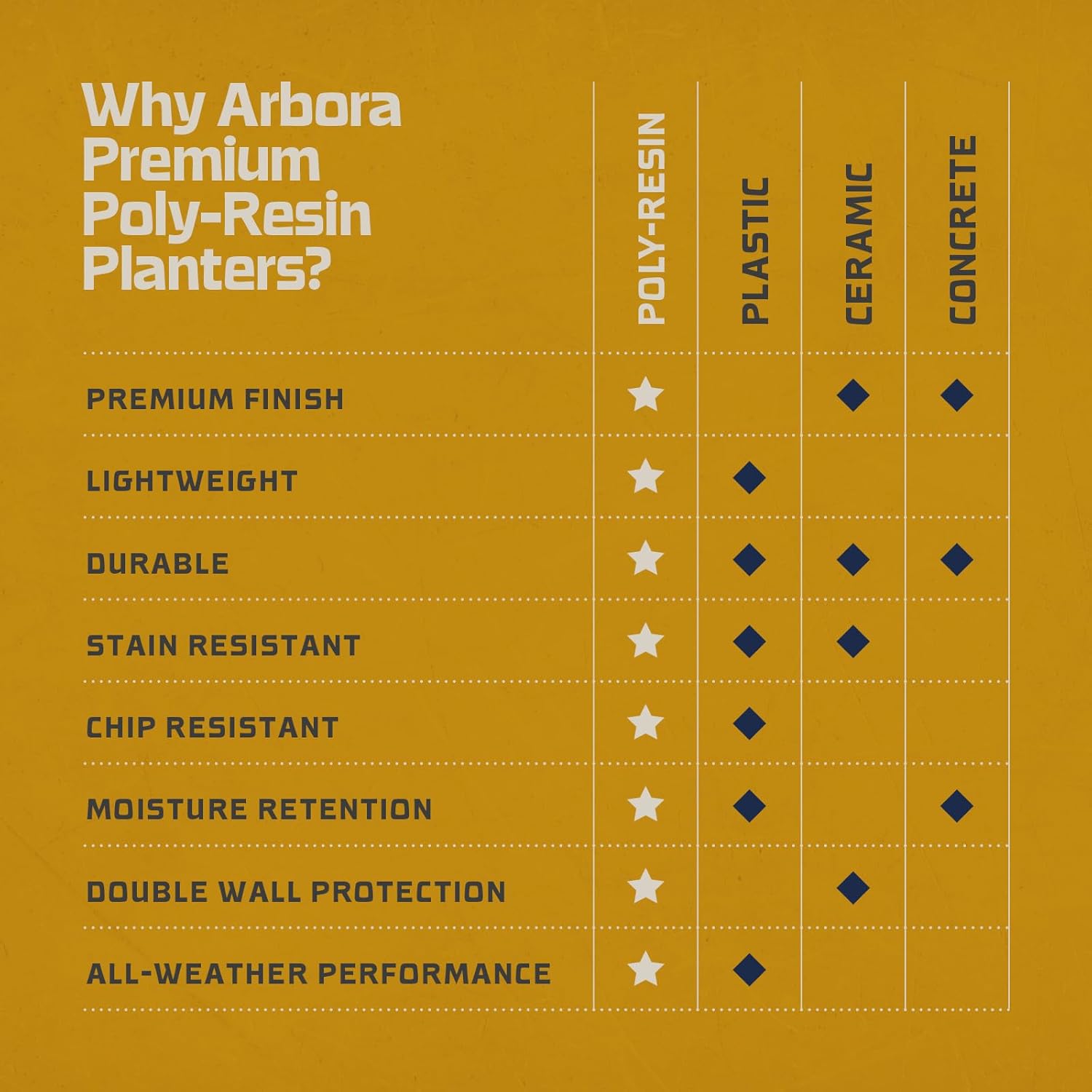 • Weatherproof & Durable - Constructed with resilient resin, Arbora pots are weatherproof and fade-resistant, maintaining their integrity season after season. Featuring double-walled insulation, experience superior plant protection in any weather.