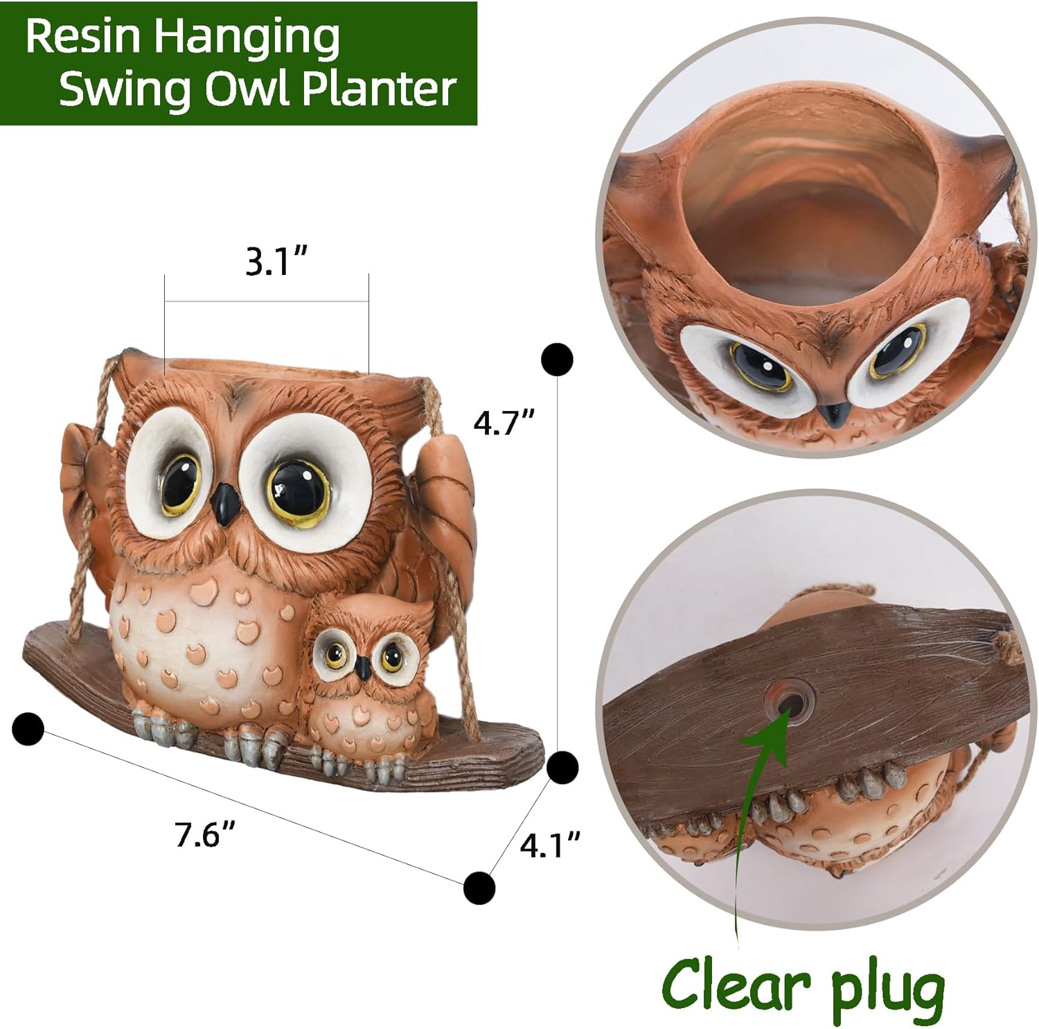 Swing Owl Hanging Planters for Indoor Plants, Cute Small Succulent Pots with Drainage Hole, Unique Resin Plant Hangers Outdoor, Hanging Plant Holder for String Of Pearls, Gift Ideas for Mother