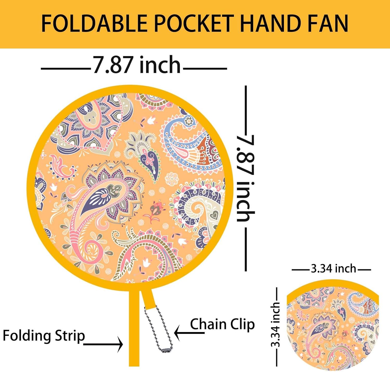 4 Pack Classic Paisley Pattern Foldable Hand Fans, Versatile Round Handheld Fans for Travel, Events, Indoor and Outdoor (Paisley)