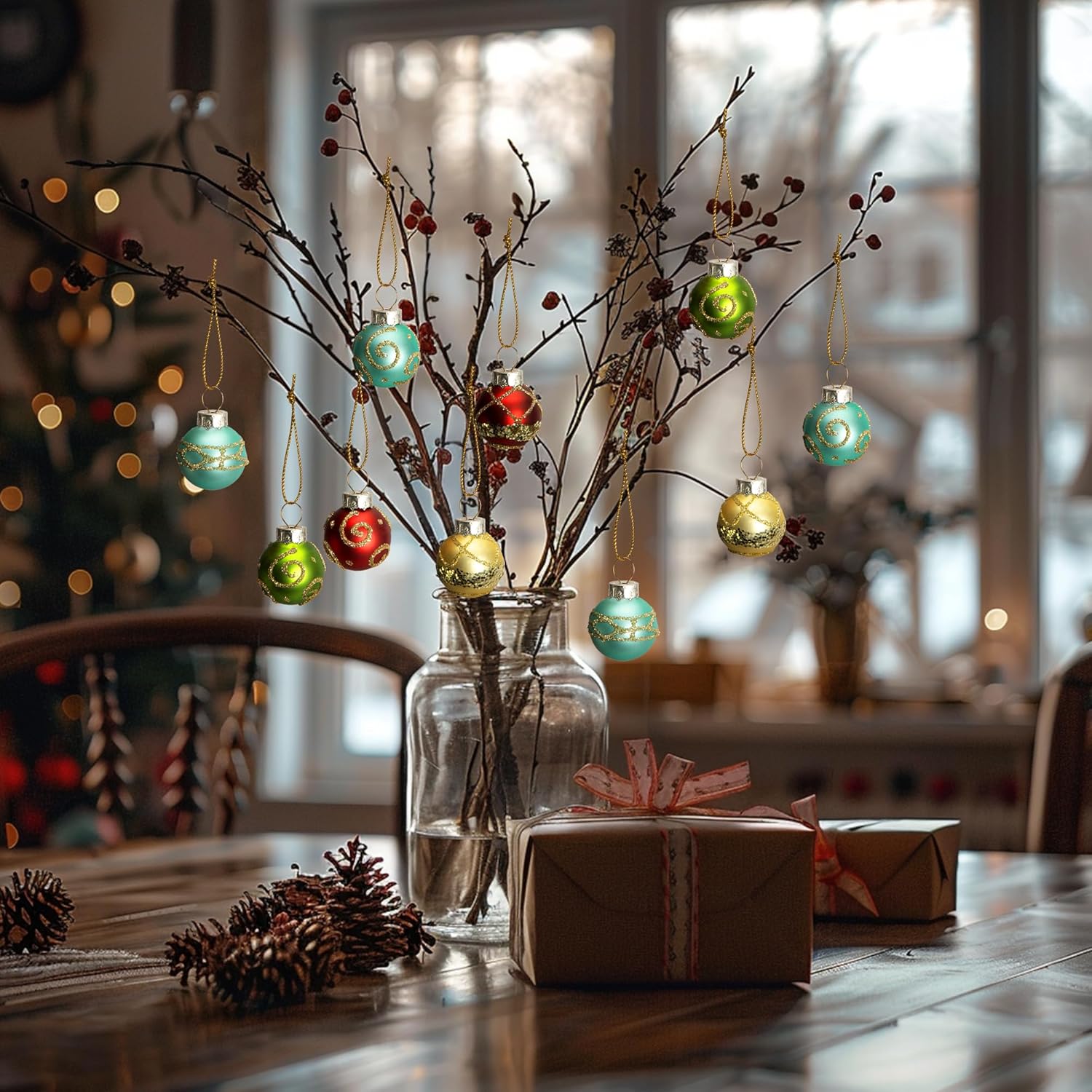 Watayo 24 Pcs Christmas Mini Multi Color Balls Glass Ornaments, 1" Mini Vintage Glittering Ball Hanging Ornaments for Tree, Red Green Gold Blue Glass Small Ball Tree Decoration for Xmas Home Decor