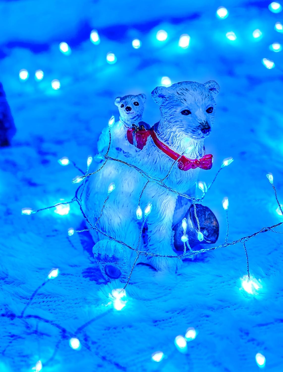 • Solar Lights Outdoor - 19.6 feet outdoor tree lights with 240 bright LED lights. The solar fairy lights produce a blue glow, fit well in your porch, garden, yard, patio, balcony
