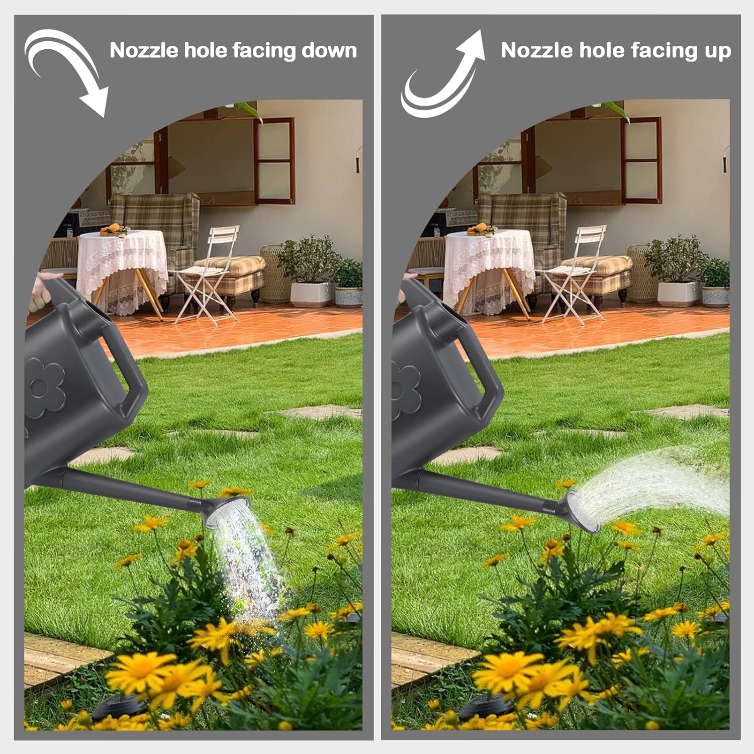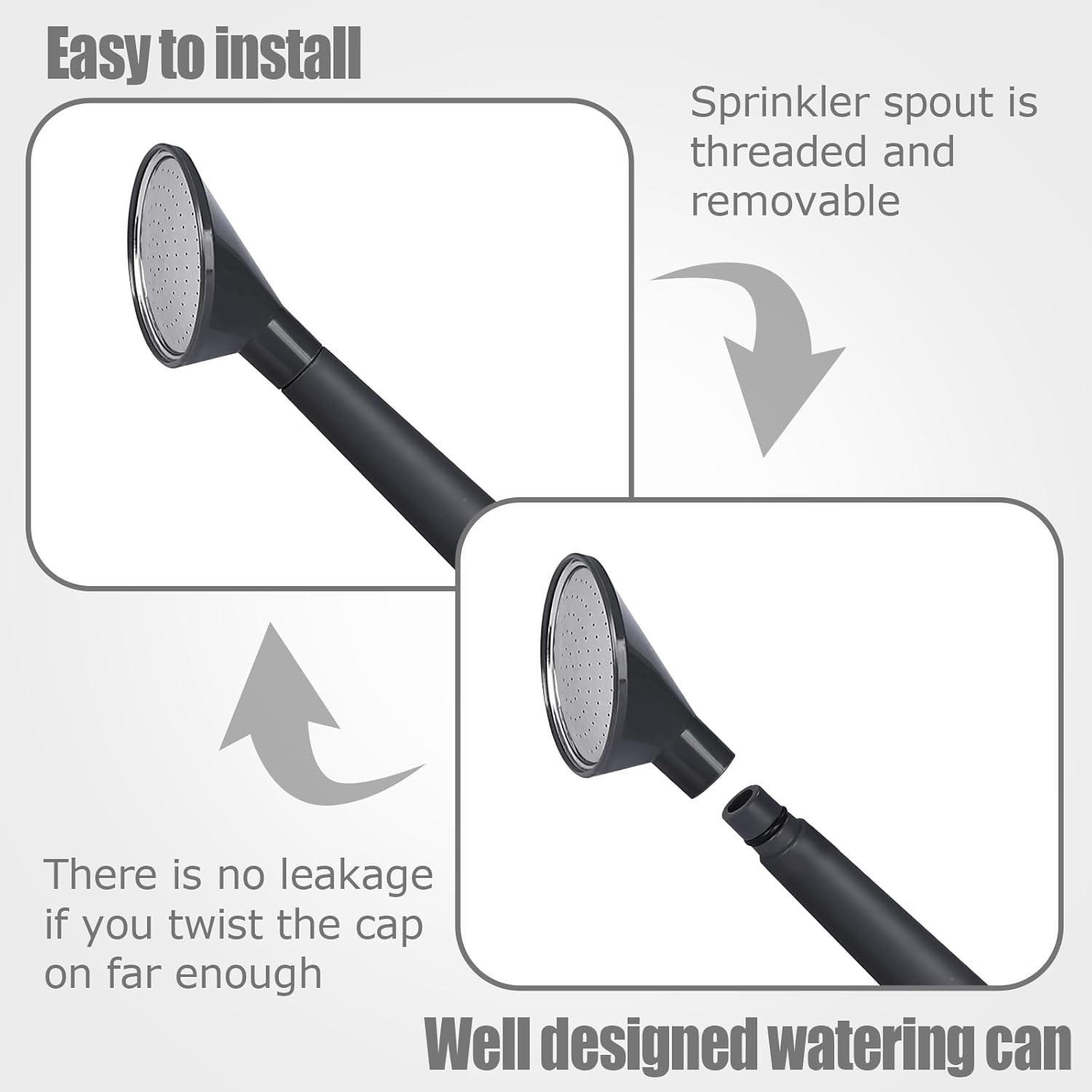 • UPGRADED DETACHABLE CONVERTIBLE NOZZLE: With the help of the watering can's detachable shower nozzle, you can water your hanging or wall-mounted plants with great ease. Indoor and outdoor plants benefit from its multipurpose design's ability to manage water flow more delicately and precisely.