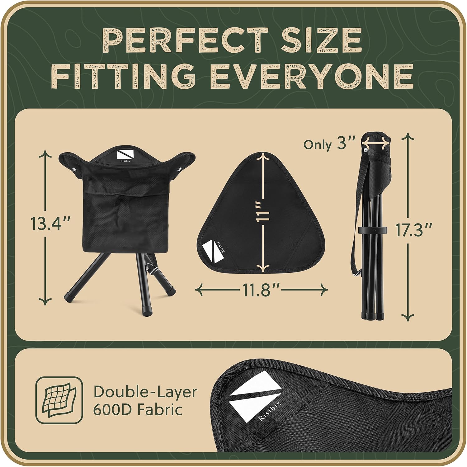 • ● COMPACT CONVENIENCE: This petite tripod seat unfolds to a comfortable height ideal for quick rests during hikes. The 3 legged stool small stature ensures easy transport with comfort. Camping stools can fit seamlessly into your outdoor adventures