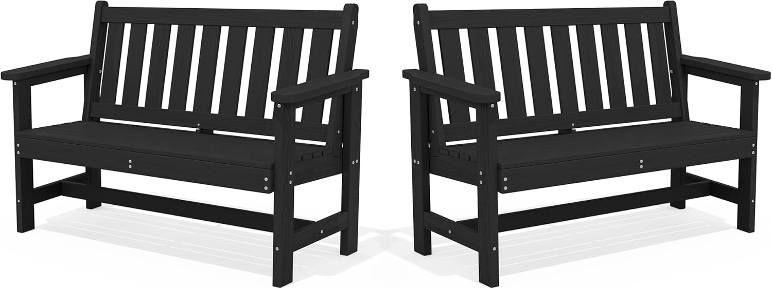 SERWALL Outdoor Bench, HDPE Outdoor Benches Weatherproof, 2-Person Garden Bench with 660 lbs Weight Capacity, Patio Benches for Outdoors, Garden, Porch, Backyard and Park, Black, 2 Pack