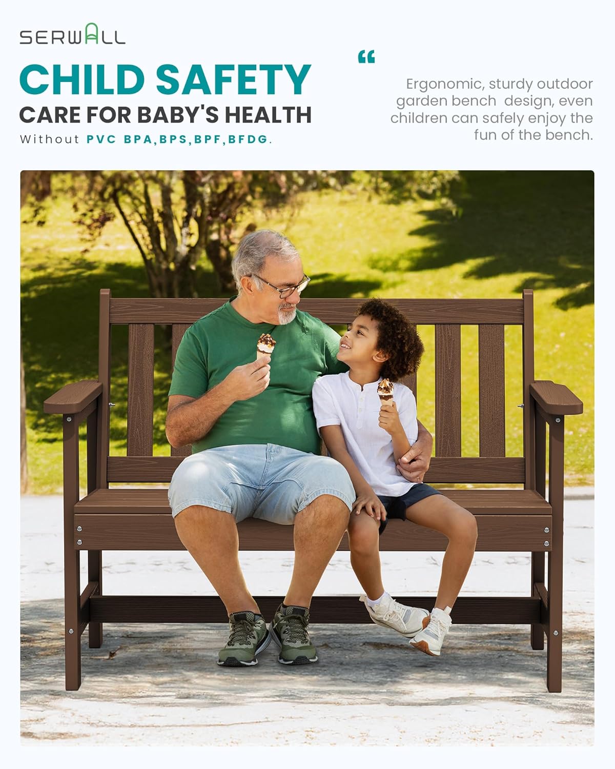 SERWALL Outdoor Bench, HDPE Outdoor Benches Weatherproof, 2-Person Garden Bench with 660 lbs Weight Capacity, Patio Benches for Outdoors, Garden, Porch, Backyard and Park, Brown, 6 Pack