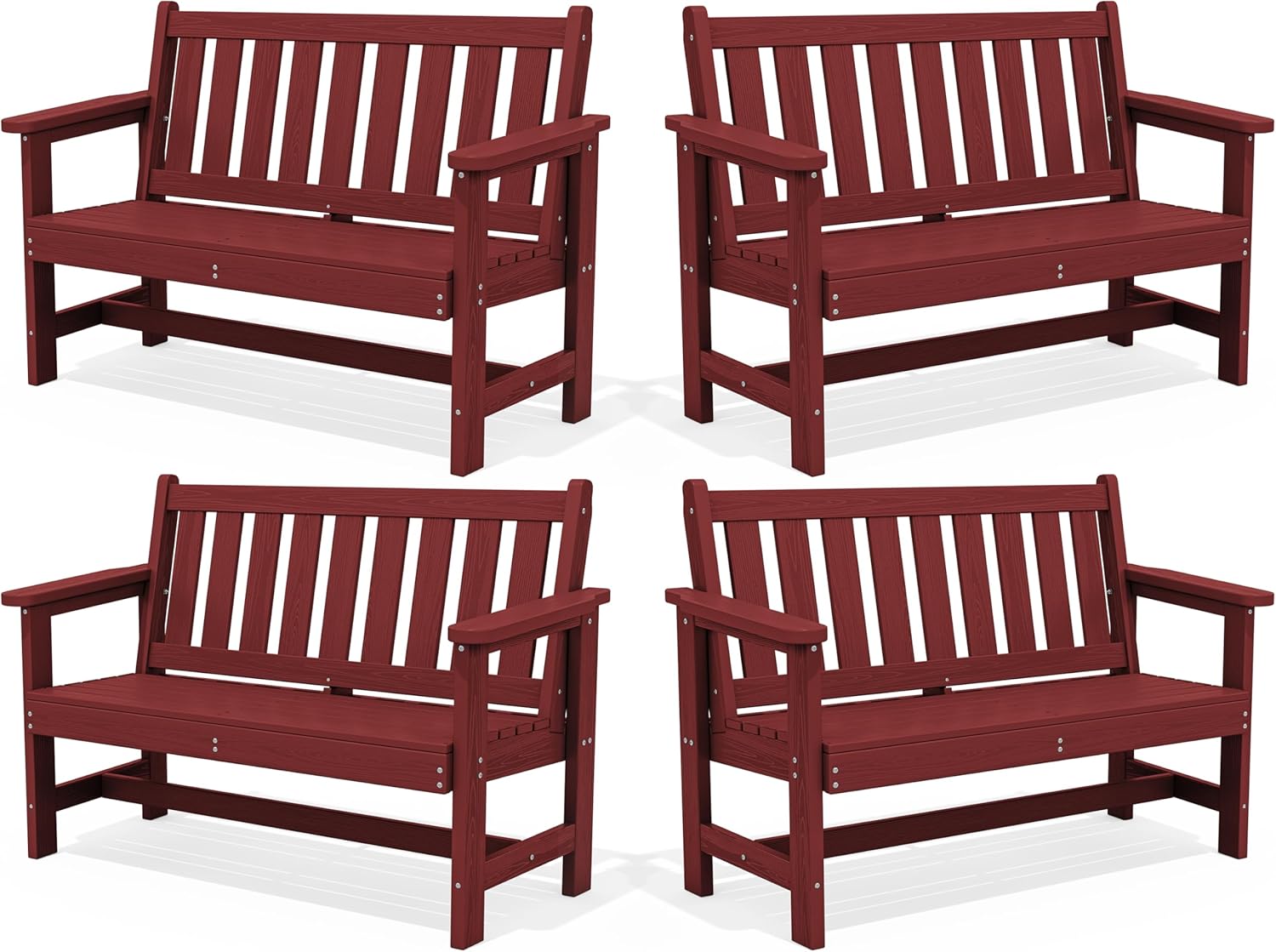 SERWALL Outdoor Bench, HDPE Outdoor Benches Weatherproof, 2-Person Garden Bench with 660 lbs Weight Capacity, Patio Benches for Outdoors, Garden, Porch, Backyard and Park, Red, 4 Pack