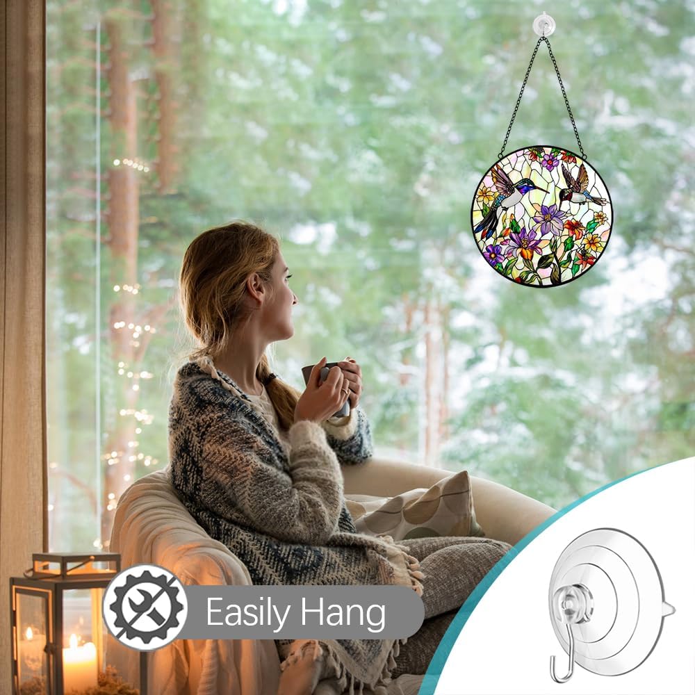• Easy to Hang Window Suncatcher: Hummingbird suncatcher package comes with a suction cup hook and easy hanging stained glass sun catcher in indoor or outdoor occasion. The suction cup provided is an upgraded version, which is transparent almost invisable and abolutely blend our decoration style and eaily reuse in other place, it also comes with an a metal chain for quick and easy hanging