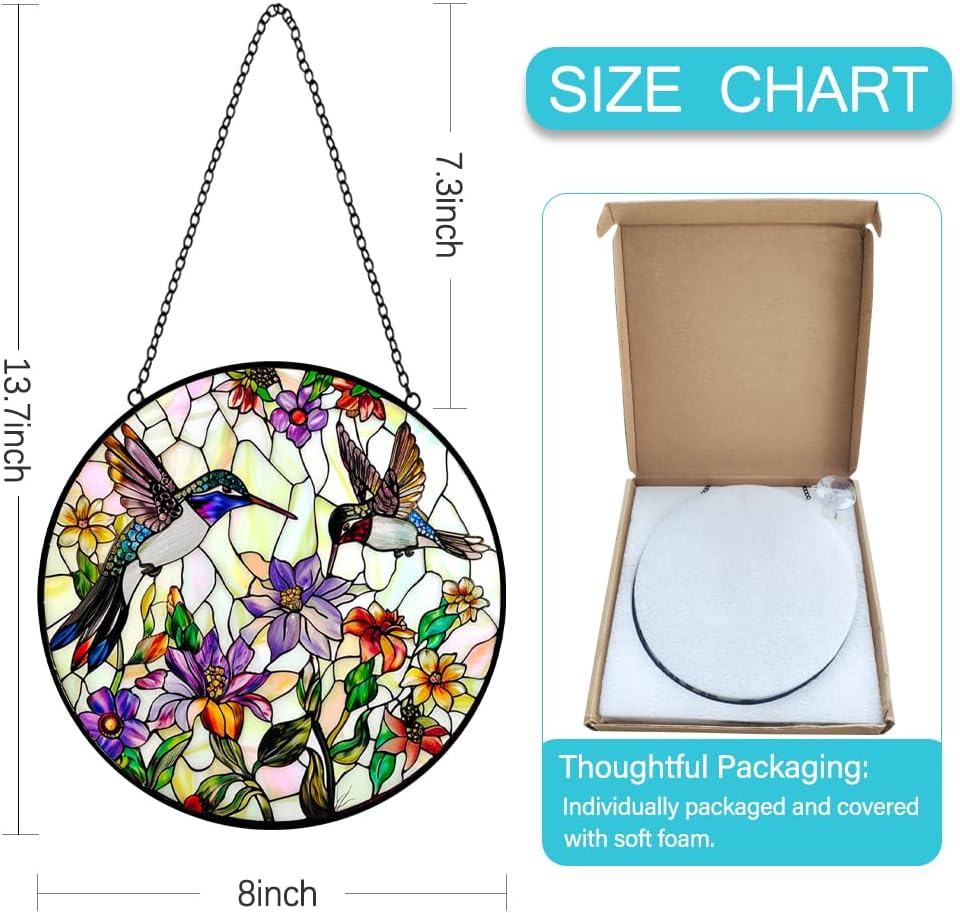 • Excellent and Satisfactory Support: Stained glass hummingbird window hangings suncatcher is packaged separately and covered with soft foam to ensure transportation safety. Reach out to us if you face any issues, and we'll promptly address your concerns with a satisfactory resolution. Packaged with care, please shop with confidence knowing you're backed by our commitment to excellence