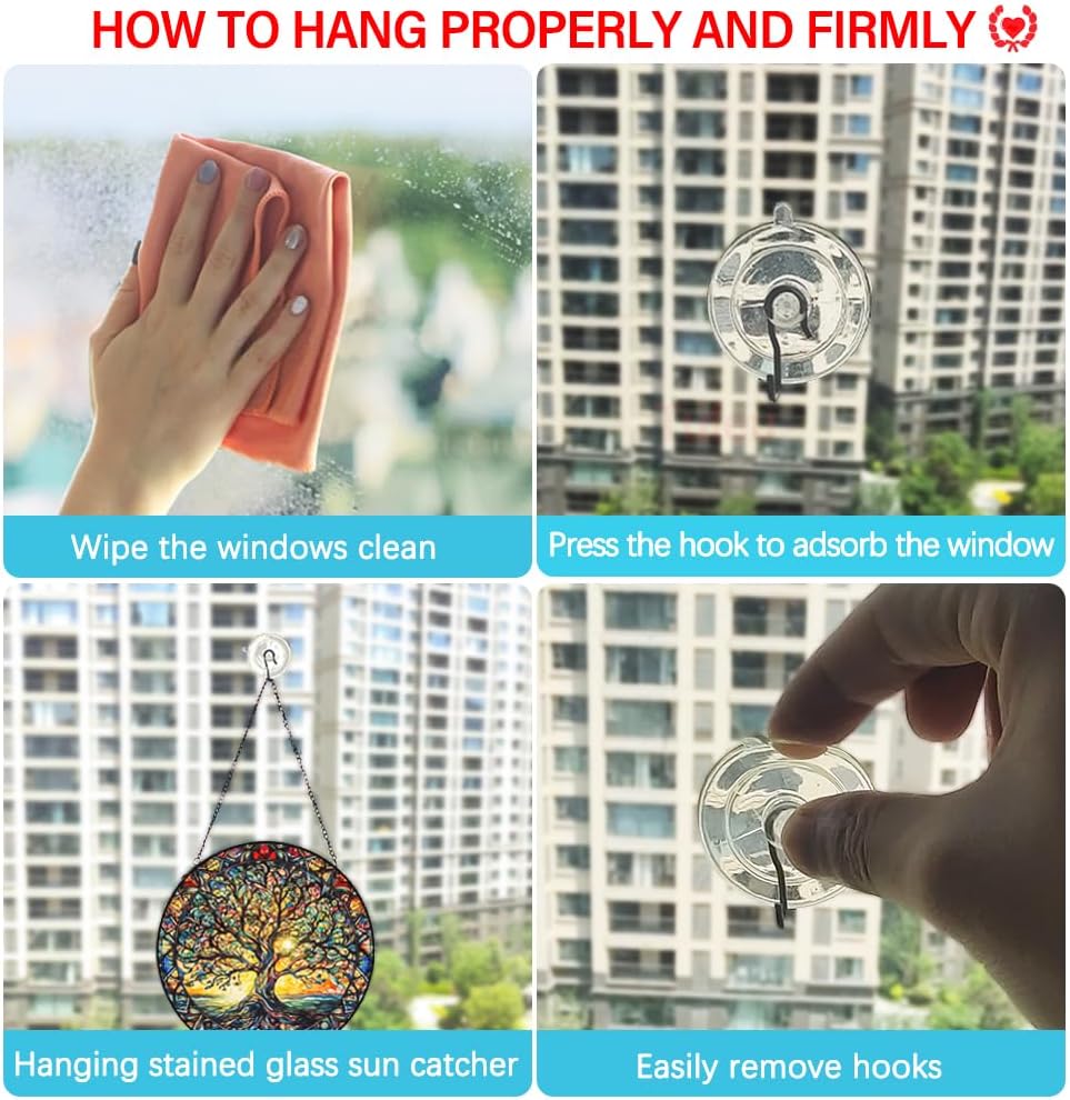 • Easy to Hang Window Suncatcher: The tree of life suncatcher garden decor package comes with a suction cup hook and easy hanging art sun catcher in indoor or outdoor occasion. The suction cup provided is an upgraded version, which is transparent almost invisable and abolutely blend our decoration style and eaily reuse in other place, it also comes with an a metal chain for quick and easy hanging