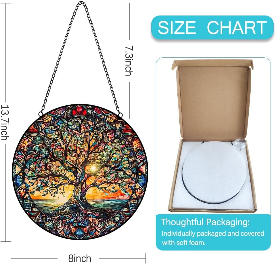 Tree of Life Suncatcher Stained Glass Window Hanging - 8″ Handmade Sun Catchers Indoor Window Catcher Suncatchers for Windows Hanging - Wall Art Home Garden Fall Decor Birthday Gifts for Women Men