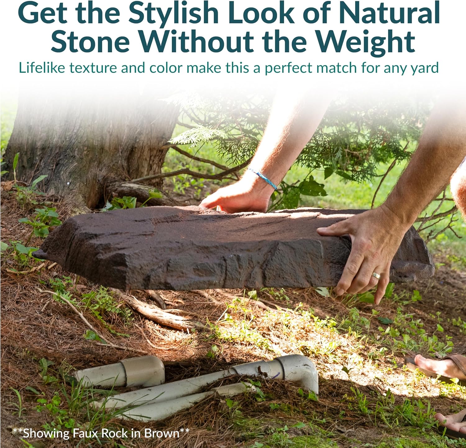 • DESIGNED TO CAMOUFLAGE: These short decorative rock covers feature a durable polyresin construction with a neutral color and texture. The material withstands the elements, while the lifelike design and irregular edges blends naturally into any outdoor space. Each artificial rock is for decorative purposes only; do not stand or climb on it.