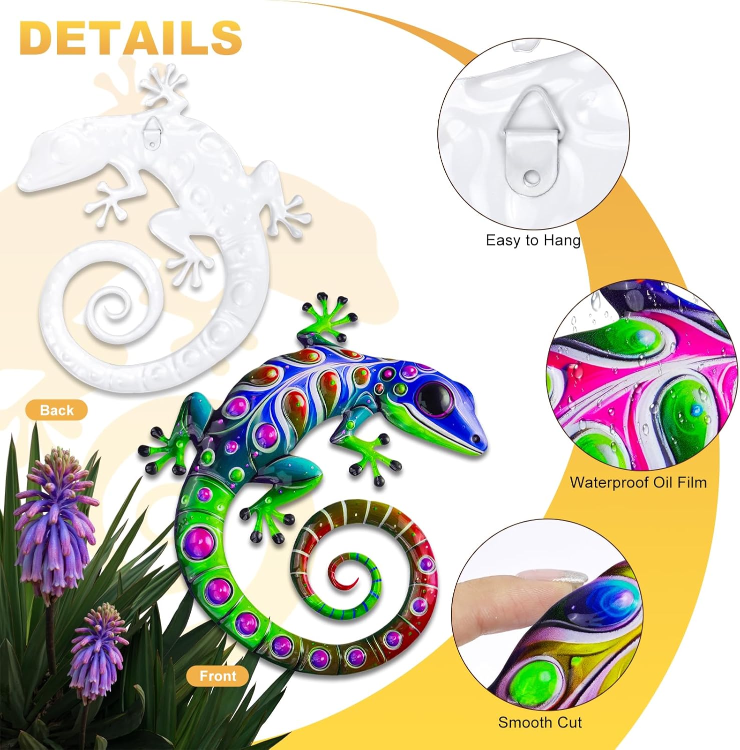 • Lifelike Lizard Wall Decor: Our outdoor decoration brand new pattern design is very realistic. Set of 4 colorful metal gecko wall art decors bring your fence, wall, garden, home to life with its plump body, vivid head and distinctive curly tail