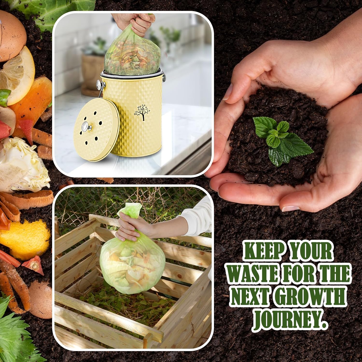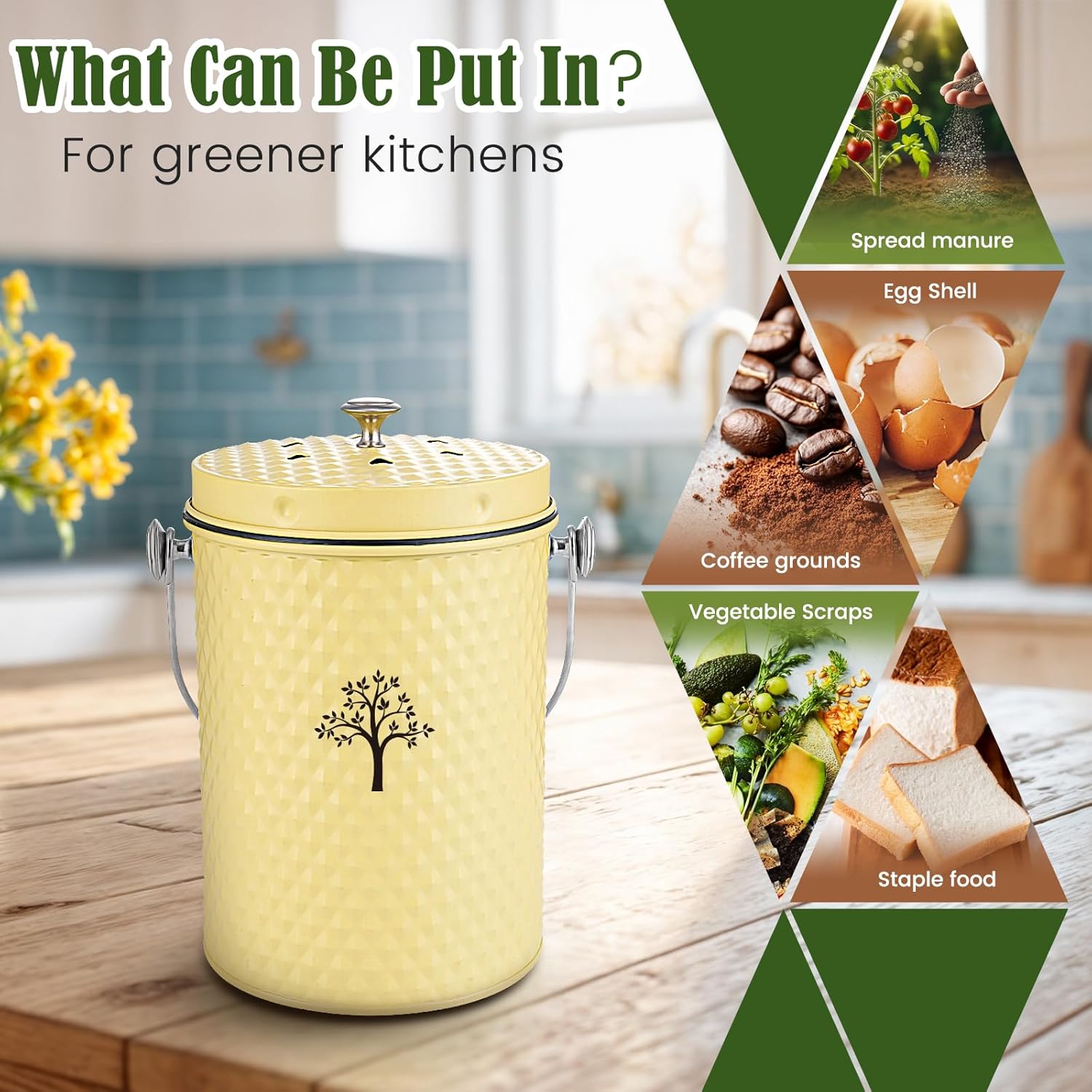 • 【ENVIRONMENTALLY FRIENDLY COMPOSTING】:The compost bin is the perfect odorless storage container for organic kitchen waste in your home.It will complement any kitchen decor.Put kitchen waste into outdoor organic fertilizer for composting and reuse. Not only does it make a stylish decoration, but it’s also functional and great for a greener environment.