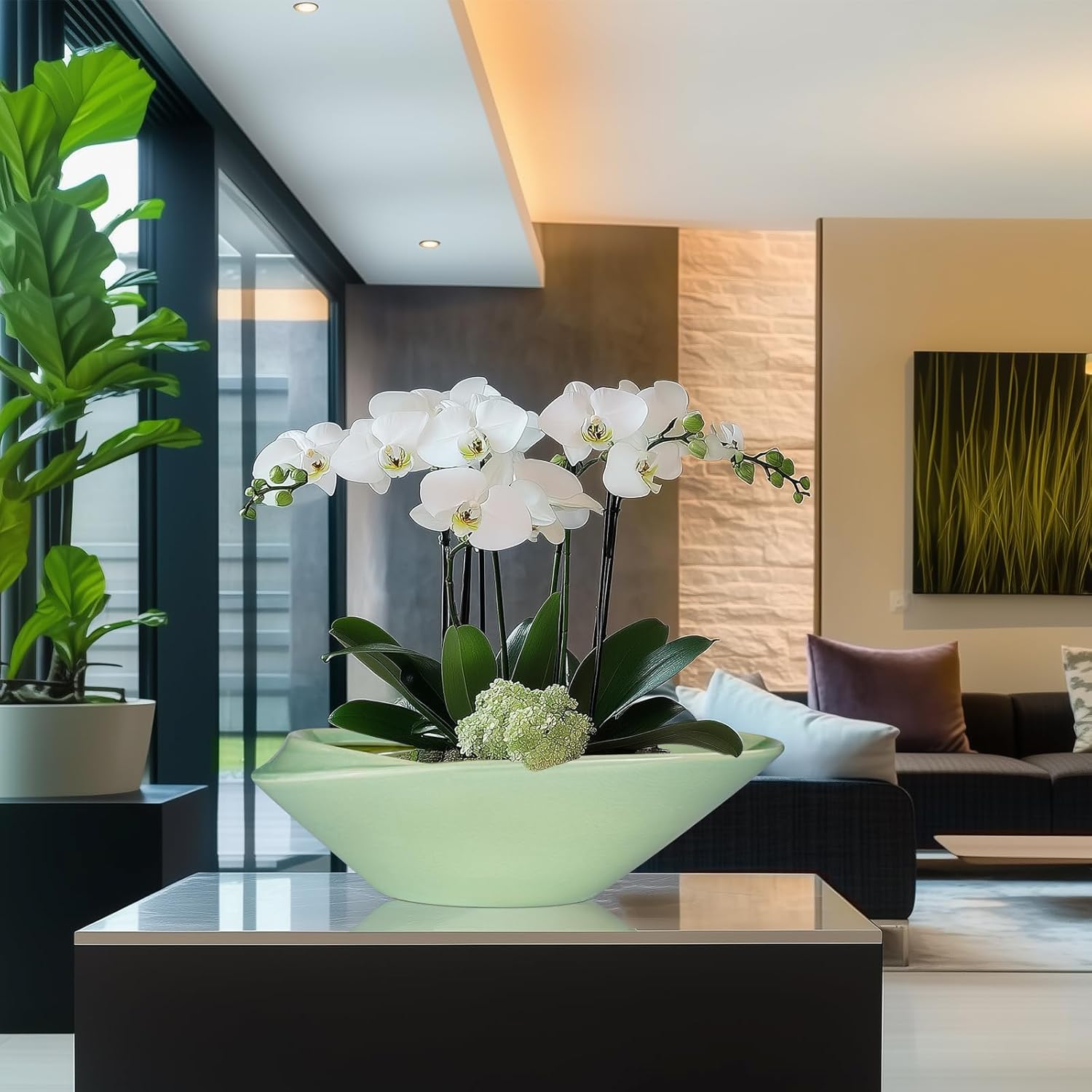• 18 Inch Planter for Home Decor: The modern style large light green bonsai pot for plants that can be placed on a table, living room, balcony, patio, garden, and other places