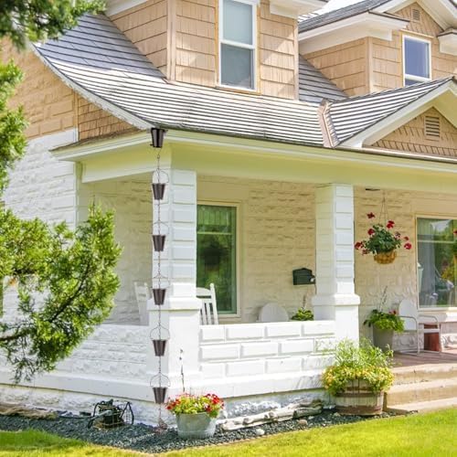 • Excellent Iron Spray Painting Carft : This rain chain set is made of high-quality iron, which is carefully polished and sanded through multiple processes, and then covered with high-quality rust-proof spray paint. This process not only enhances the aesthetics of the product, but also greatly enhances its weather resistance and corrosion resistance, ensuring that it stays bright and new for a long time and extends its service life even in humid .