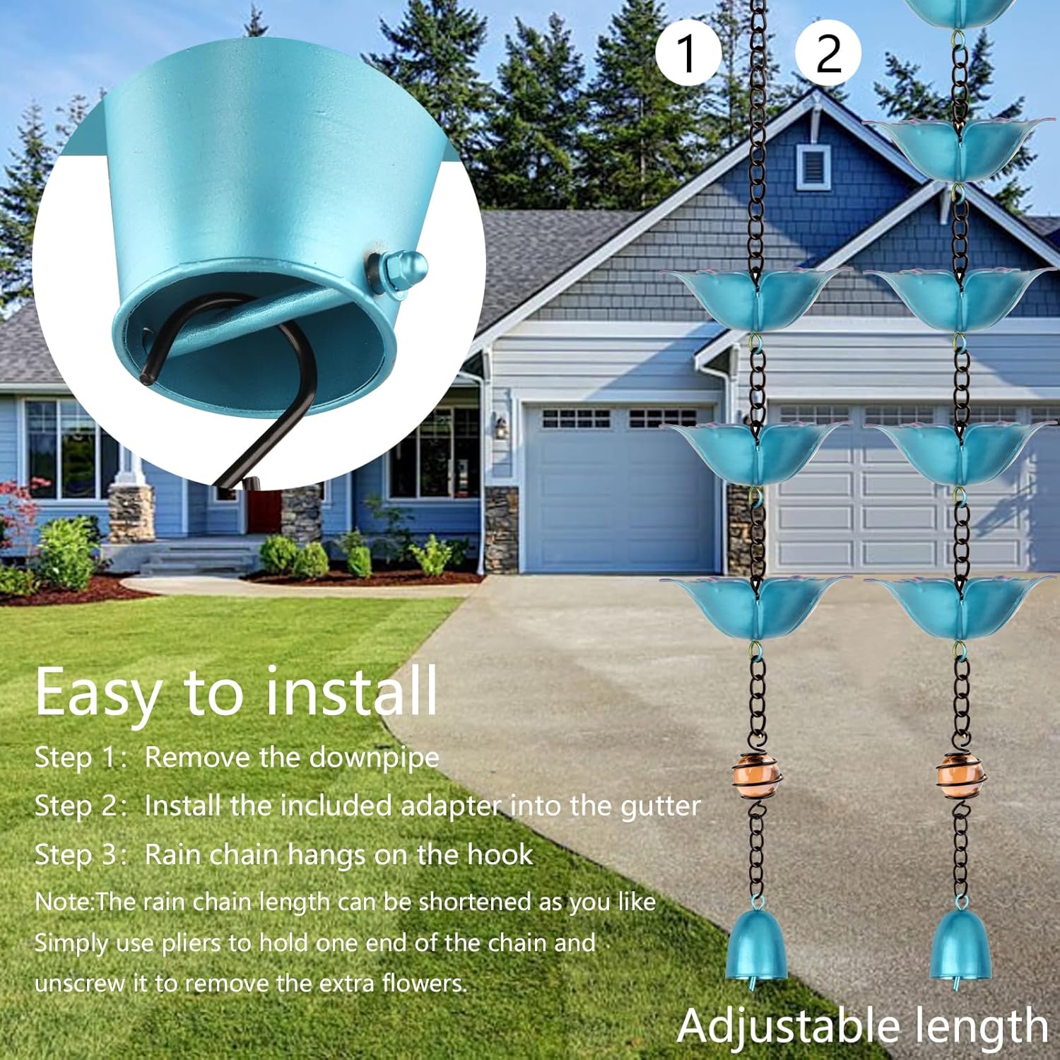 • PERFECT GIFT CHOICE: This Outdoor Flower Rain Chain is an ideal gift for your friends and family, practical and artistic at the same time. Whether it's a birthday, holiday or other special occasions, it can convey your care and blessings to them, making the recipient feel warm and surprised.