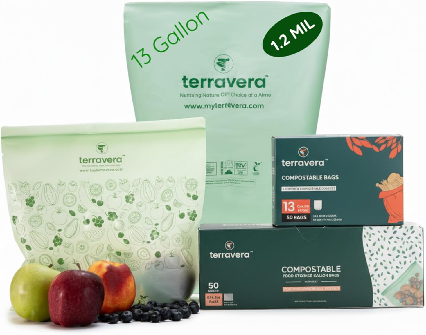 • ECO-FRIENDLY CHOICE: terravera bags are BPI and OK Home certified & 100% compostable bags, decompose completely within 180 days