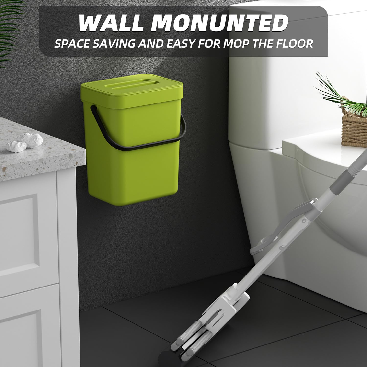 • Hanging/Wall-Mount Compost Bin Small: This hanging compost bin can be effortlessly hung on kitchen or pantry cabinet doors (ensure the door thickness is less than 0.86 inches). Additionally, the small wall mount trash can can be mounted on walls under sinks, inside cupboards, or on kitchen and bathroom walls using the included adhesive pad for easy installation