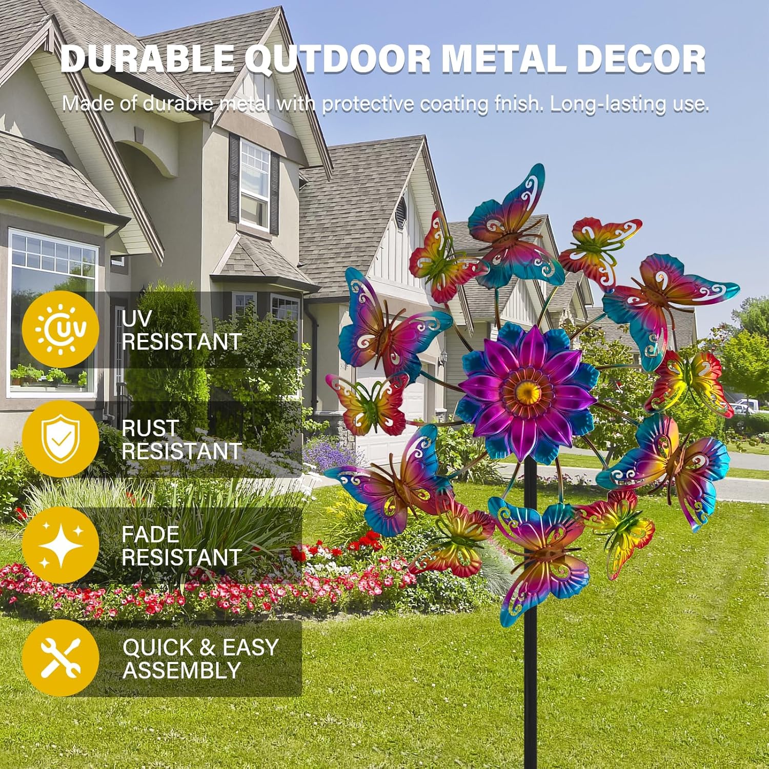 • 【Garden-themed Decoration】Crafted from high-quality metal, our windmill is corrosion-resistant and rust-proof. You can choose different elements to match your garden and yard, bringing unique and eye-catching elements to your outdoor space.