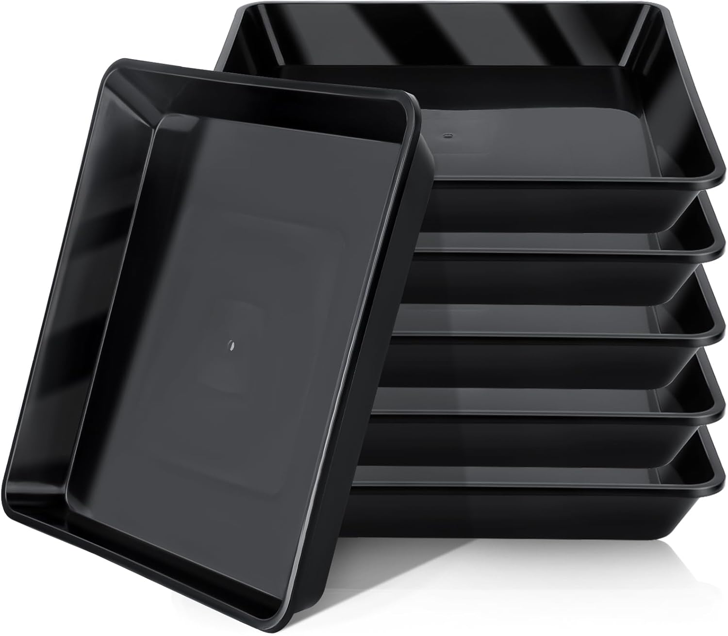 GREANER 6 Packs Square Plant Saucer, Plant Water Dray Tray, Durable Thick Plant Pot Dish for Flower Pot, Plastic Plant Tray to Catch Water for Indoor Outdoor(10 Inch, Black)