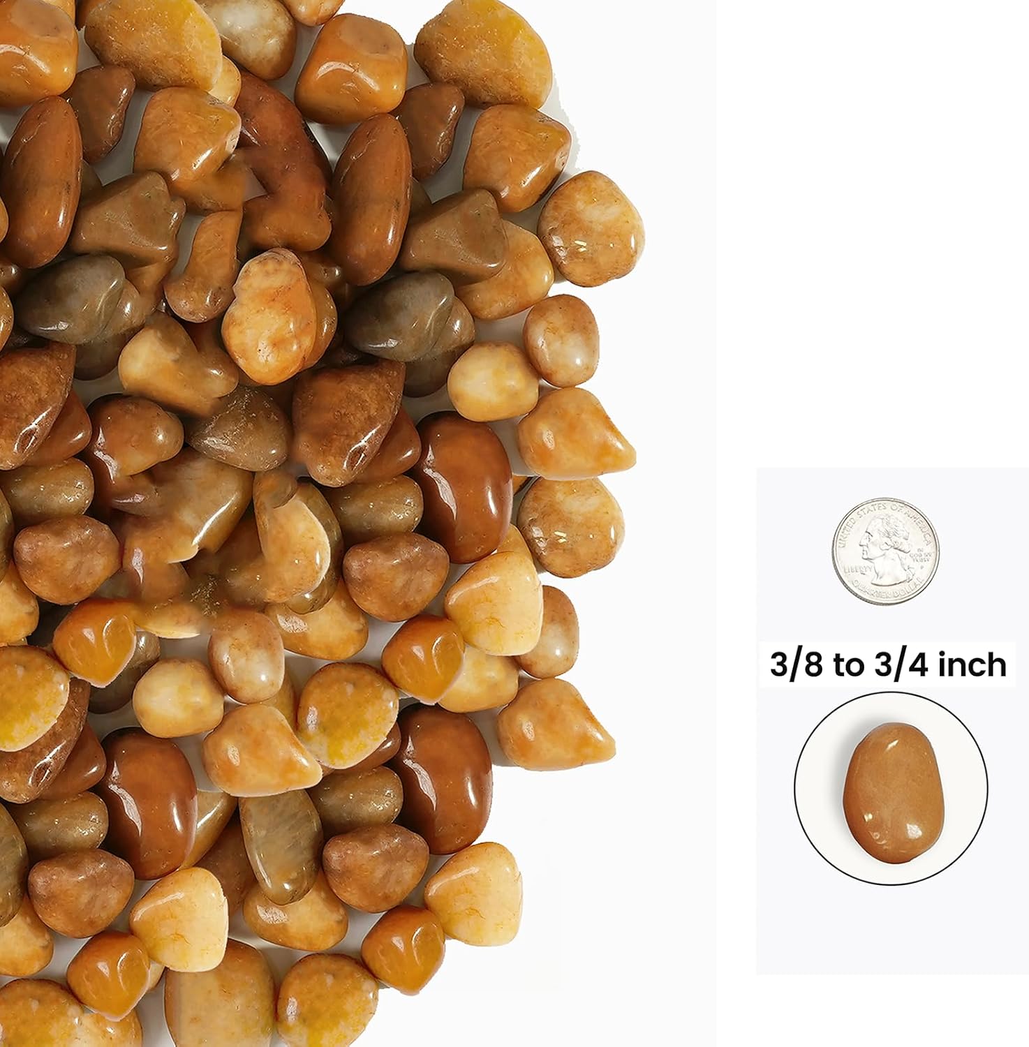Stonecreek 24 LBS River Rocks (2 x 12 LBS Bags) – Natural Polished Decorative Pebbles, Garden Landscaping Stones for Planters, Vase Fillers, Succulent Pots, Fish Tanks & Terrariums, Yellow Medium