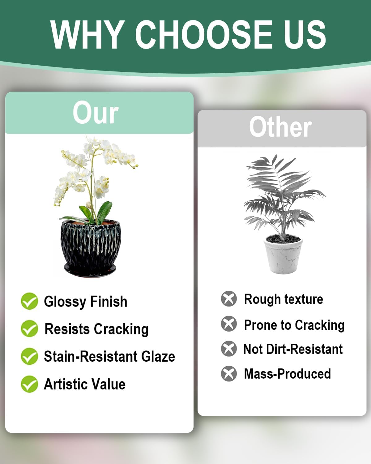 • 【Thick Fired Ceramic】Made from high temperature fired ceramic with a smooth glazed surface. This planter is durable stable and suitable for indoor or outdoor environments
