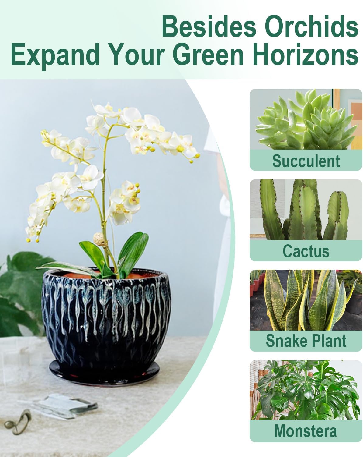 • 【Repot Orchids and More】Designed with enough space for repotting orchids. This pot also fits succulents snake plants herbs and bonsai. Perfect for both novice and experienced plant lovers
