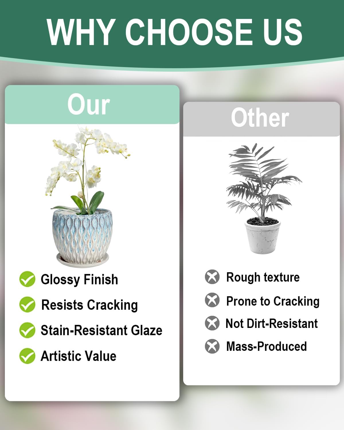 • 【Drainage Hole and Saucer】This 7.5 inch ceramic orchid pot includes a built-in drainage hole and fixed saucer. It helps manage excess water and supports better growing conditions for orchids and indoor plants