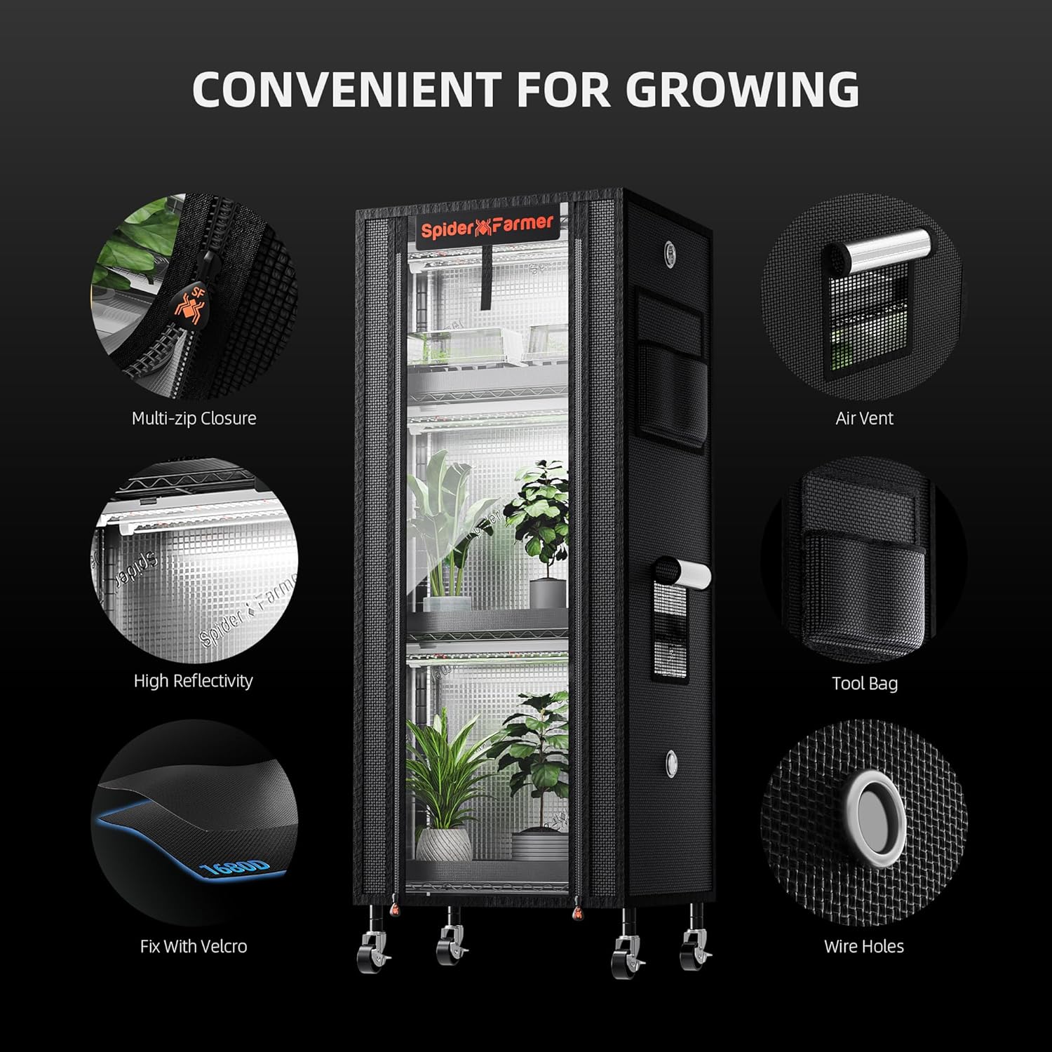 • ๐„๐ง๐ก๐š๐ง๐œ๐ž๐ ๐‡๐ข๐ ๐ก-๐๐ฎ๐š๐ฅ๐ข๐ญ๐ฒ ๐†๐ซ๐จ๐ฐ ๐“๐ž๐ง๐ญ ๐‚๐จ๐ฏ๐ž๐ซ: Made from 1680D waterproof Oxford fabric with a highly reflective silver interior and transparent PVC observation window. Reinforced stitching ensures durability while maximizing light efficiency. Provides a stable and ideal environment for plant growth and makes it easy to watch your plants at any time.