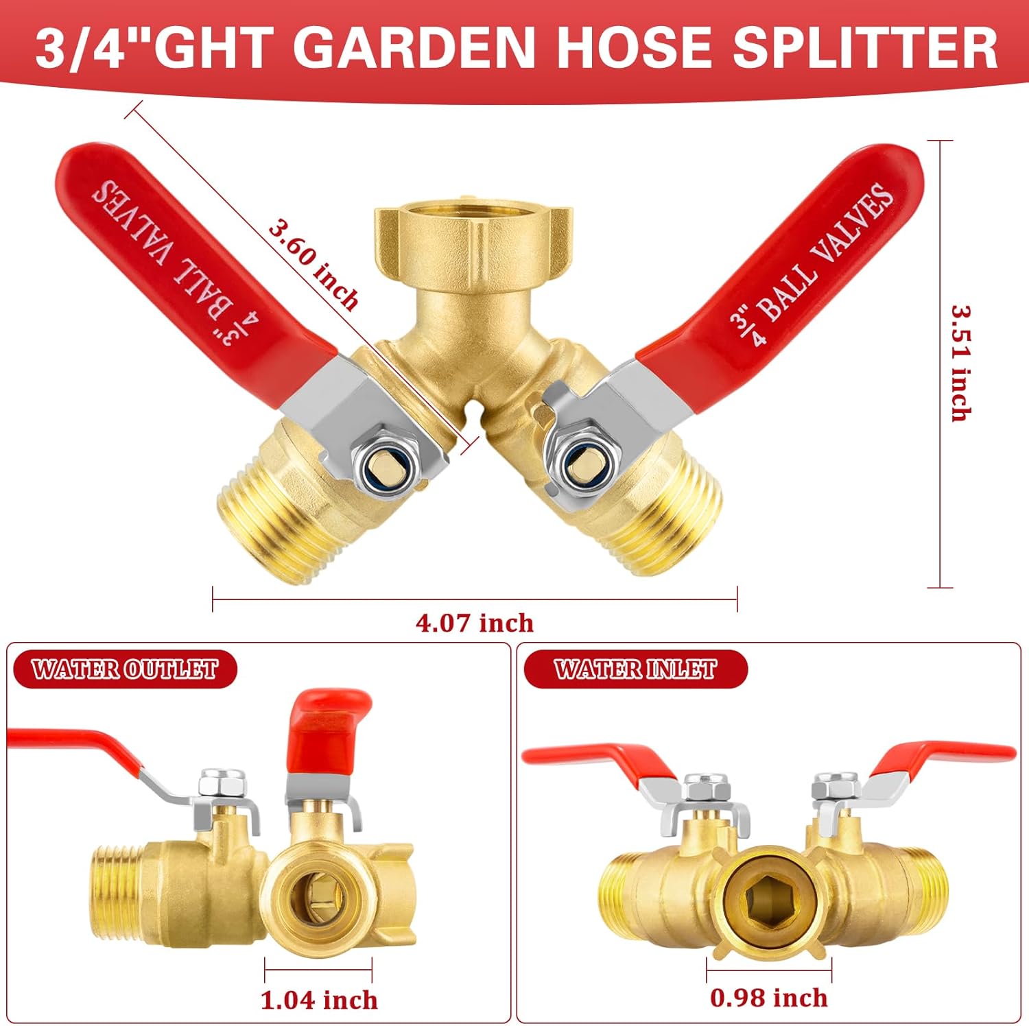 • Large Handle Design: The oversized handle on this garden hose splitter 2 way provides a comfortable grip, making it easy to open or close the valves, even with wet or gloved hands.