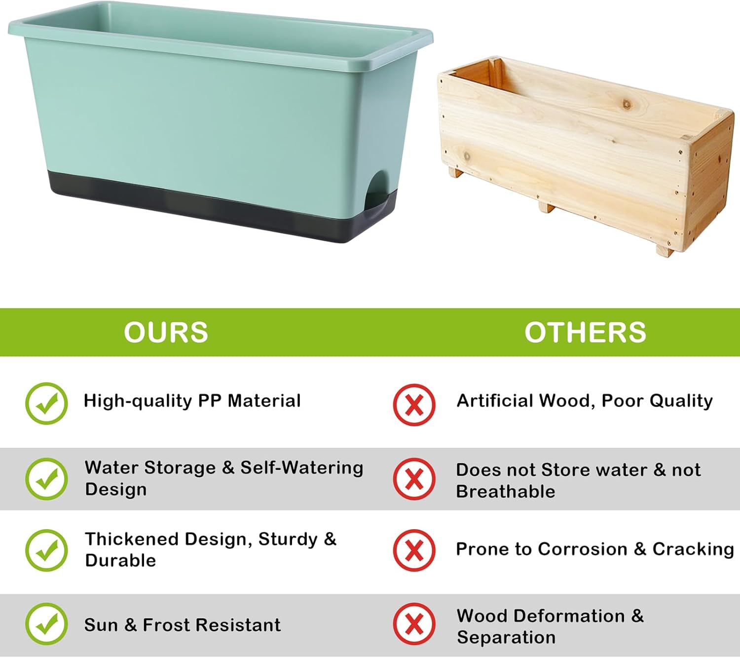 • 【Premium & Durable】The planter pots are made of high quality PP material and has been thickened to bear up to 300KG (660LB). This window box planter is sturdy, wear-resistant and durable. It can be exposed to light, wind, and sunlight for long periods of time, with a lifespan of decades. It is an excellent planter box for both indoor and outdoor.