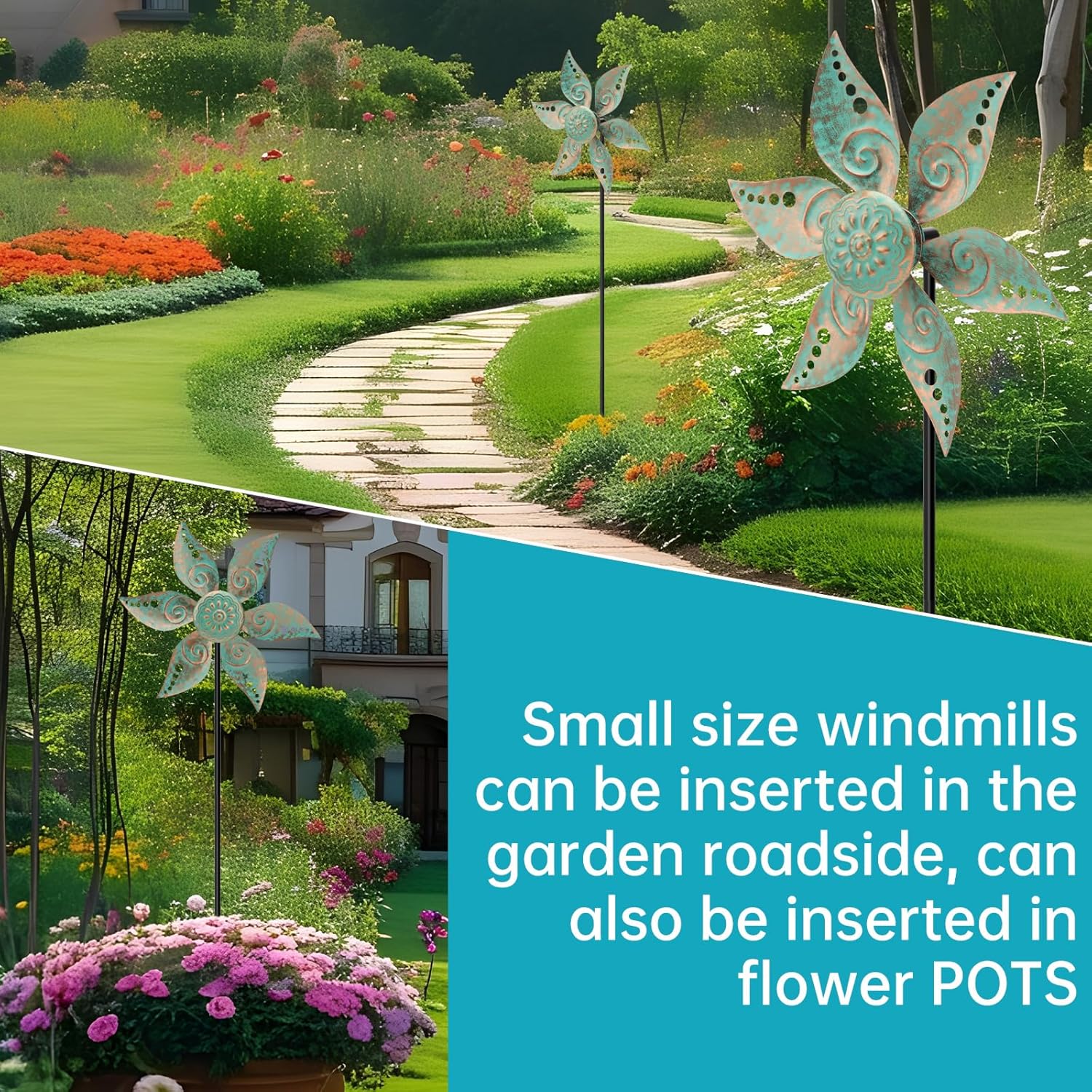 2 Pack Wind Spinners Outdoor Clearance Metal Vintage Green,Wind Sculpture Small Iron Windmill is Decorative Garden Stakes for Patio Lawn Outdoor Yard Lawn Garden Decor