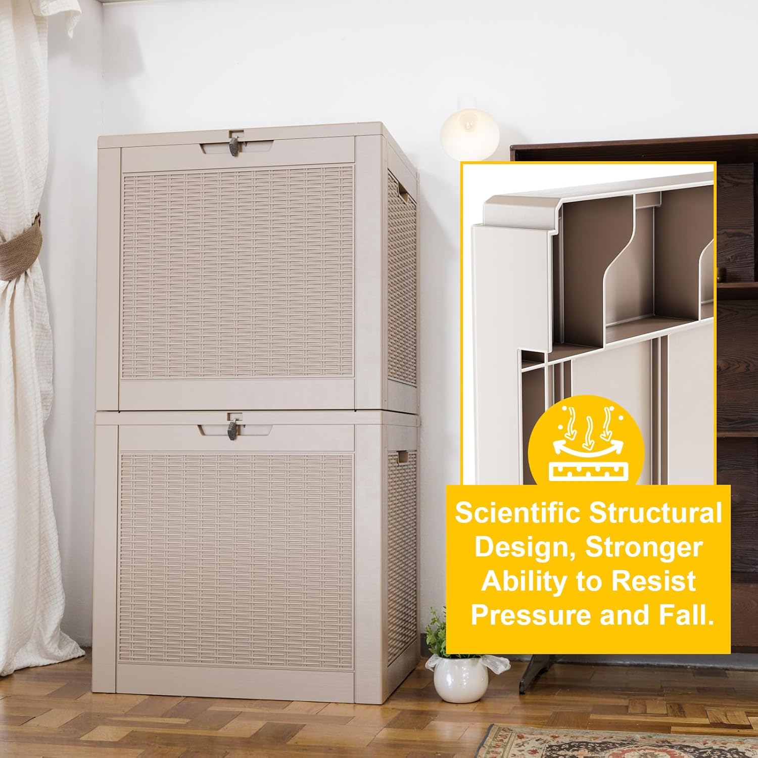 • ADAPTABLE TO VARIOUS SCENES: Whether used as an indoor laundry storage chest or an outdoor deck box container for items like outdoor cushions, garden tools, pool accessories, and this patio storage box provides abundant space. It's also versatile as a side table, yard seat, storage bench, or footrest