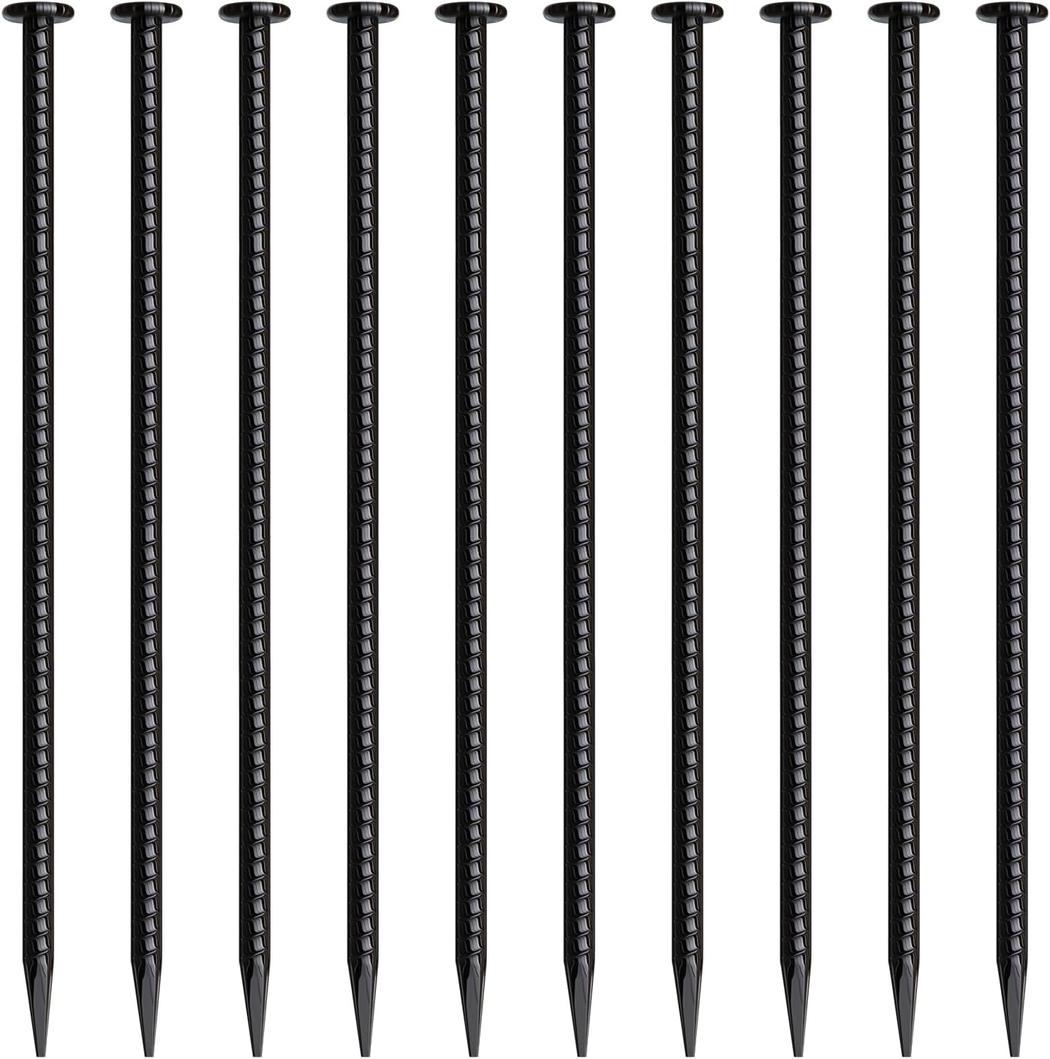 • 【HEAVY DUTY REBAR STAKES】These ground stakes are constructed from galvanized steel and feature a black powder coating, providing excellent rust resistance. The metal stakes are designed to be more durable and resistant to fading, ensuring long-lasting quality. The ribbed ground anchors offer solid support, securing firmly without bending. These ground anchors are particularly well-suited for measuring signs and supporting garden plants.
