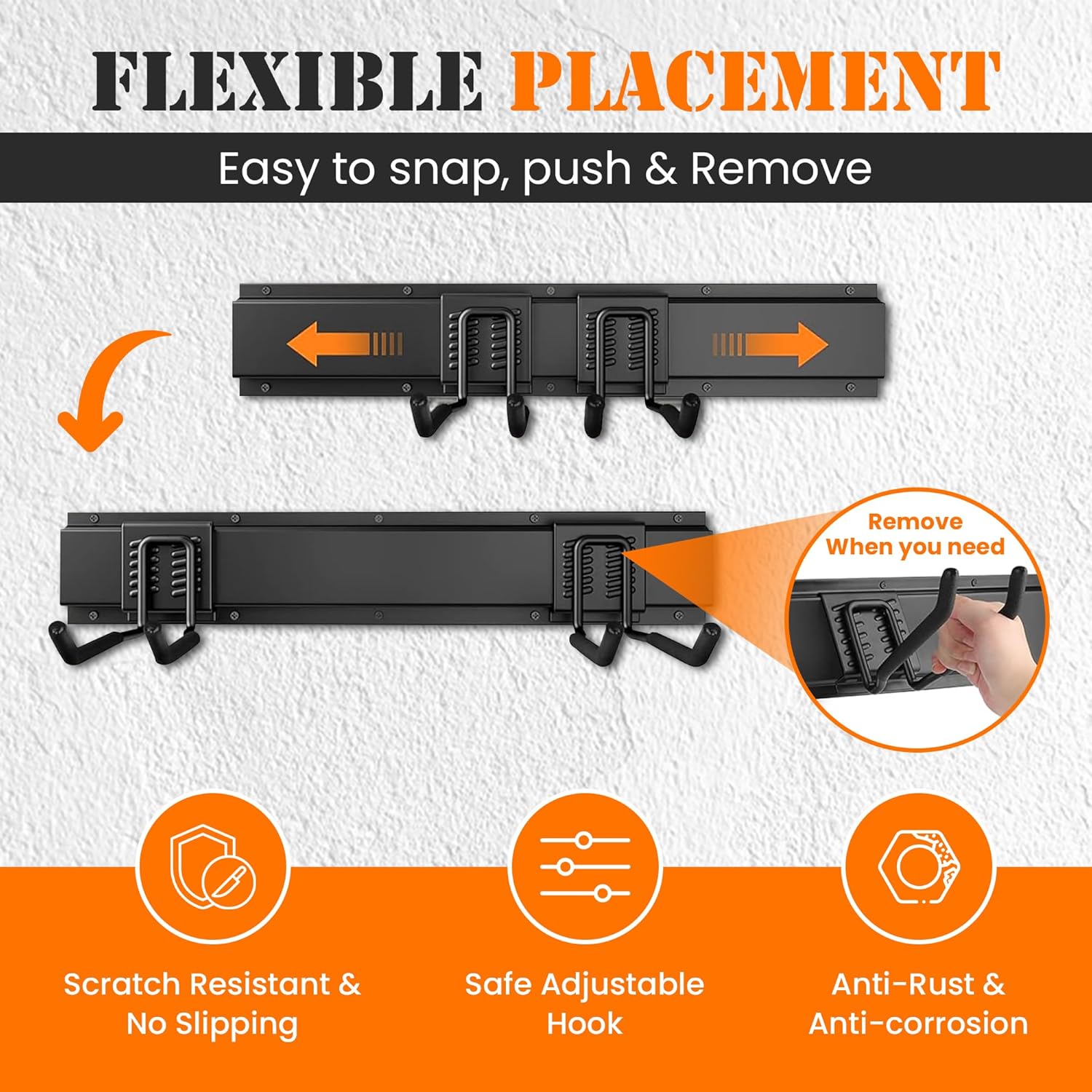 Garage Storage, Garage Organization, Garage Tool Organizer Wall Mount, Garden Tool Organization and Storage 48.1 Inches, Max 450lbs Adjustable Metal Hooks, Hangers Garden Yard Tool Rack,