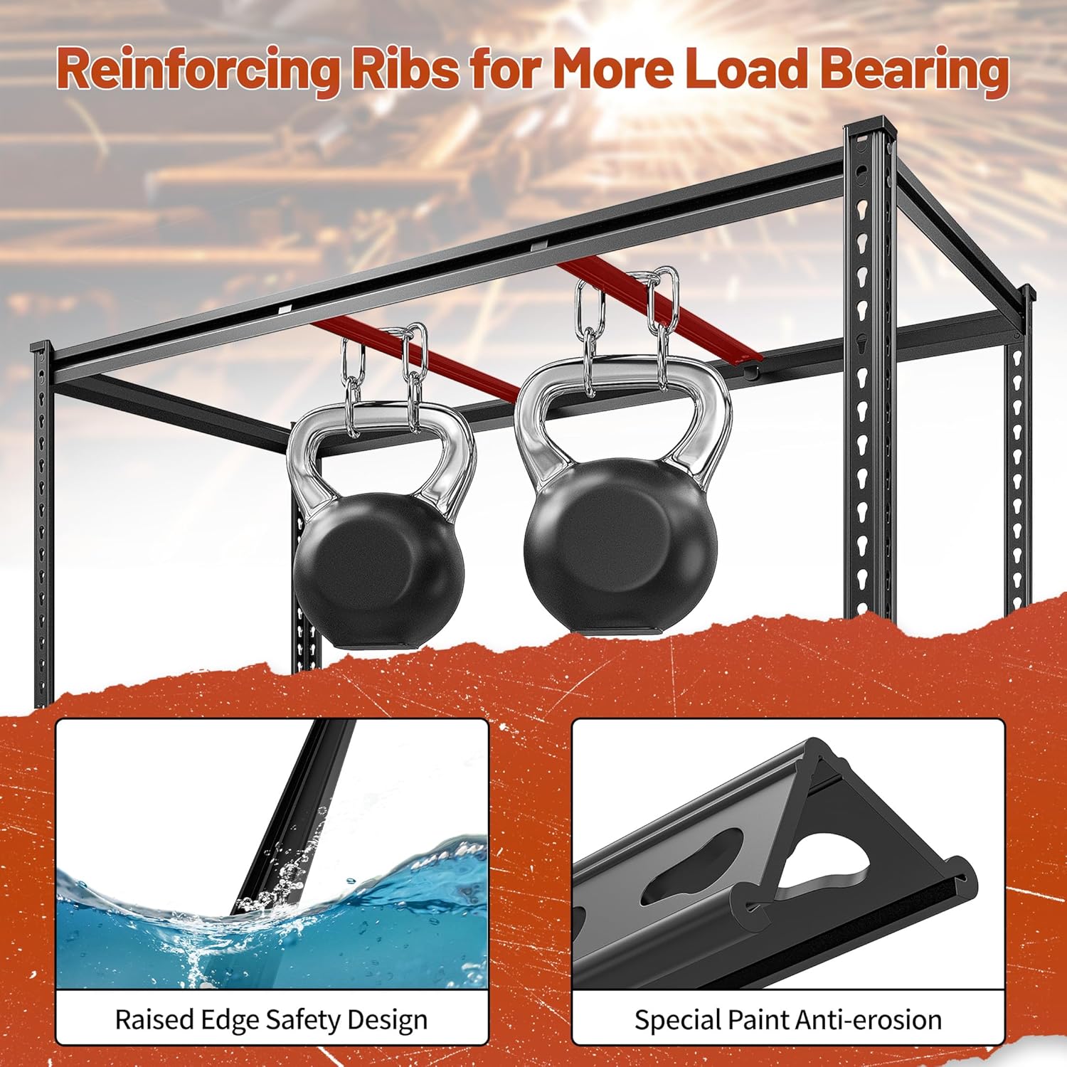 • 【2550LBS Capacity Garage Shelving】This garage shelving is made of heavy duty metal. The rolled edge thickened column effectively protects your hands, and the thickened design makes the load-bearing better, ensuring the single-layer load-bearing capacity of the garage shelf 637LBS and the total load-bearing capacity of 2550LBS. It is suitable for garage, workplaces, warehouse, living room, kitchen, to store camping equipment, tools, kitchen supplies