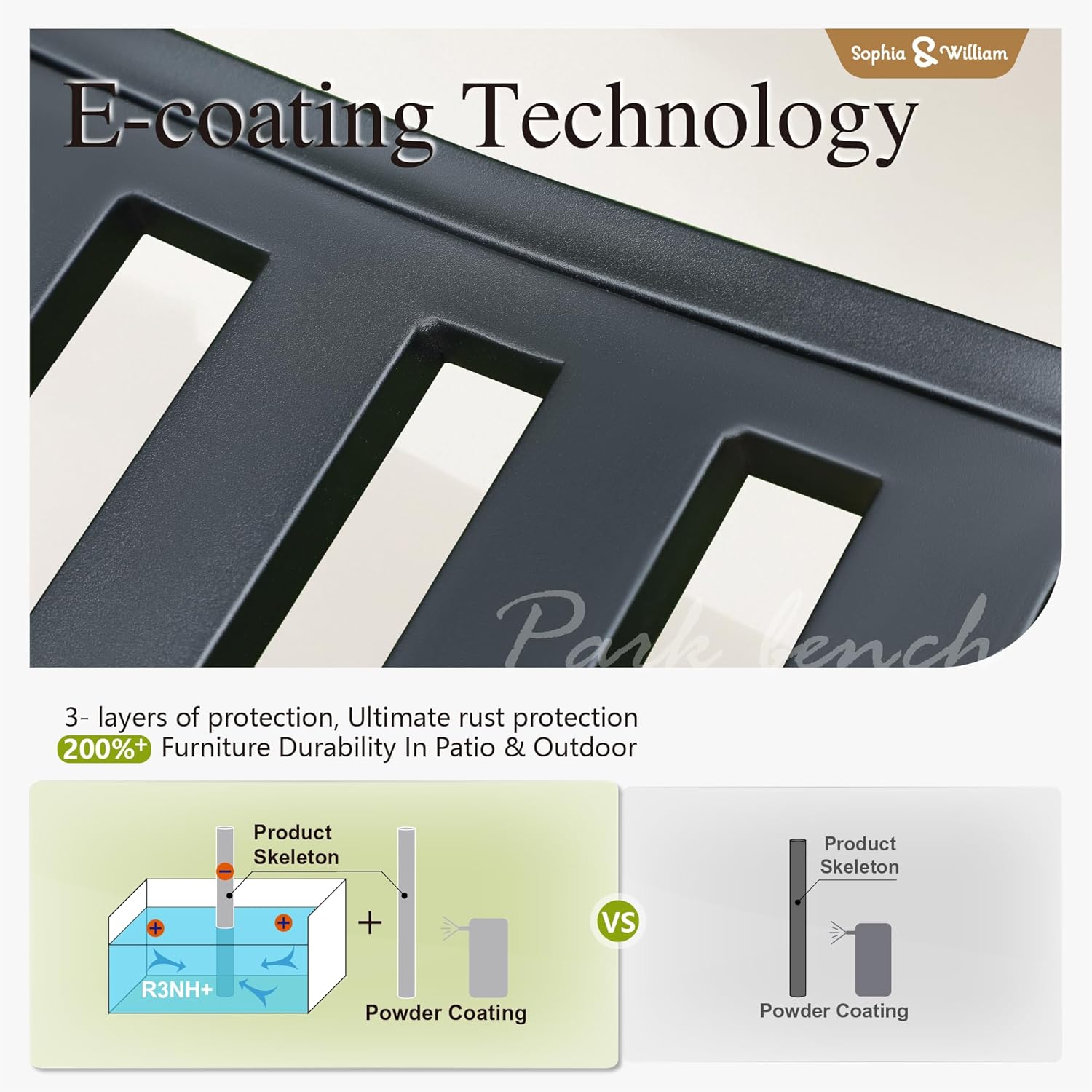 • Comfortable: The park bench for outside can sit comfortably for up to 3 people with the wide and deep seat and weight capacity: 500lbs. The slightly curved seat and armrests can perfectly fit in human body's curvature, relieving your tension and enhancing your comfort