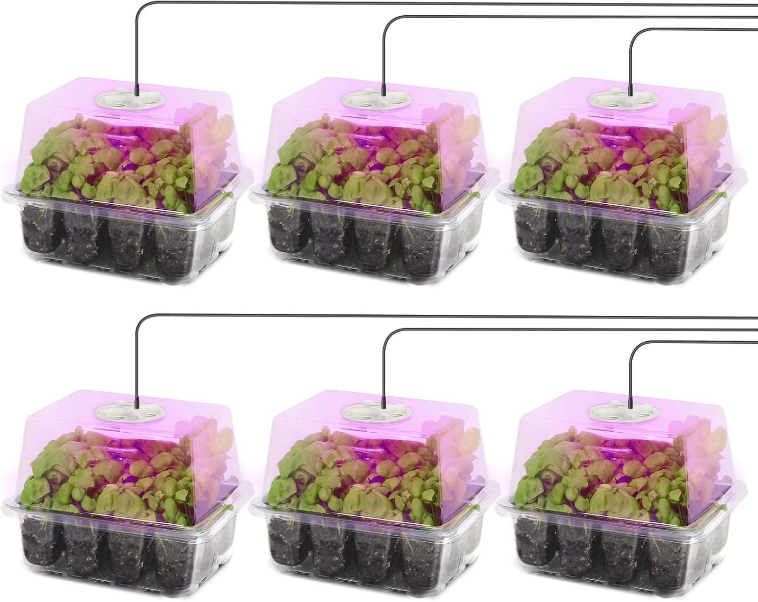 MIXC Seed Starter Kit with Grow Light, Elevated Seedling Tray Kit with Adjustable Humidity Dome and Clear Cell Tray, 12 Full Spectrum Led Beads for Seed Starting Greenhouse, 6 Pack, Transparent