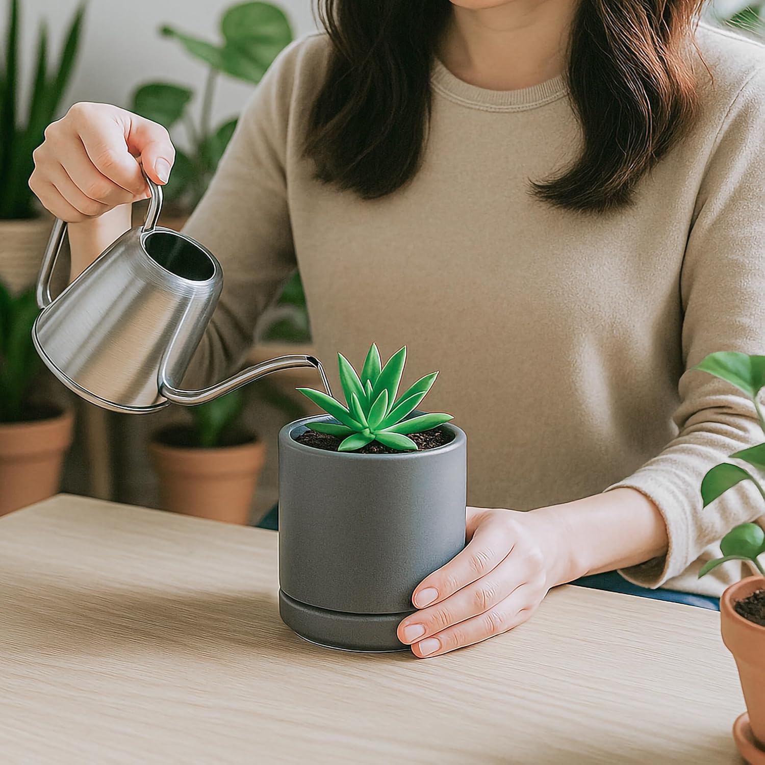 • Simple, elegant, and modern cylindrical straight round planter pot with saucer and drainage hole.