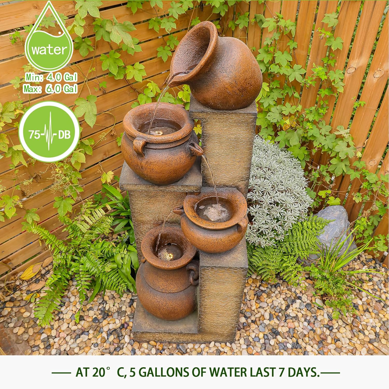 • Durable Design with Safety Guarantee: The Tall garden water fountain is made of High-quality resin materials, which is resistant to heat, wind and rain, without worrying about short-term breakage. UL Certification, 30 Days Hassle-Free Returns, 1-Year Warranty. If You Have Any Problems About The Yard Water Fountain Or Need Any Other Support, Please Feel Free To Contact Us Through Amazon, We Will Respond Within 16 Hours.
