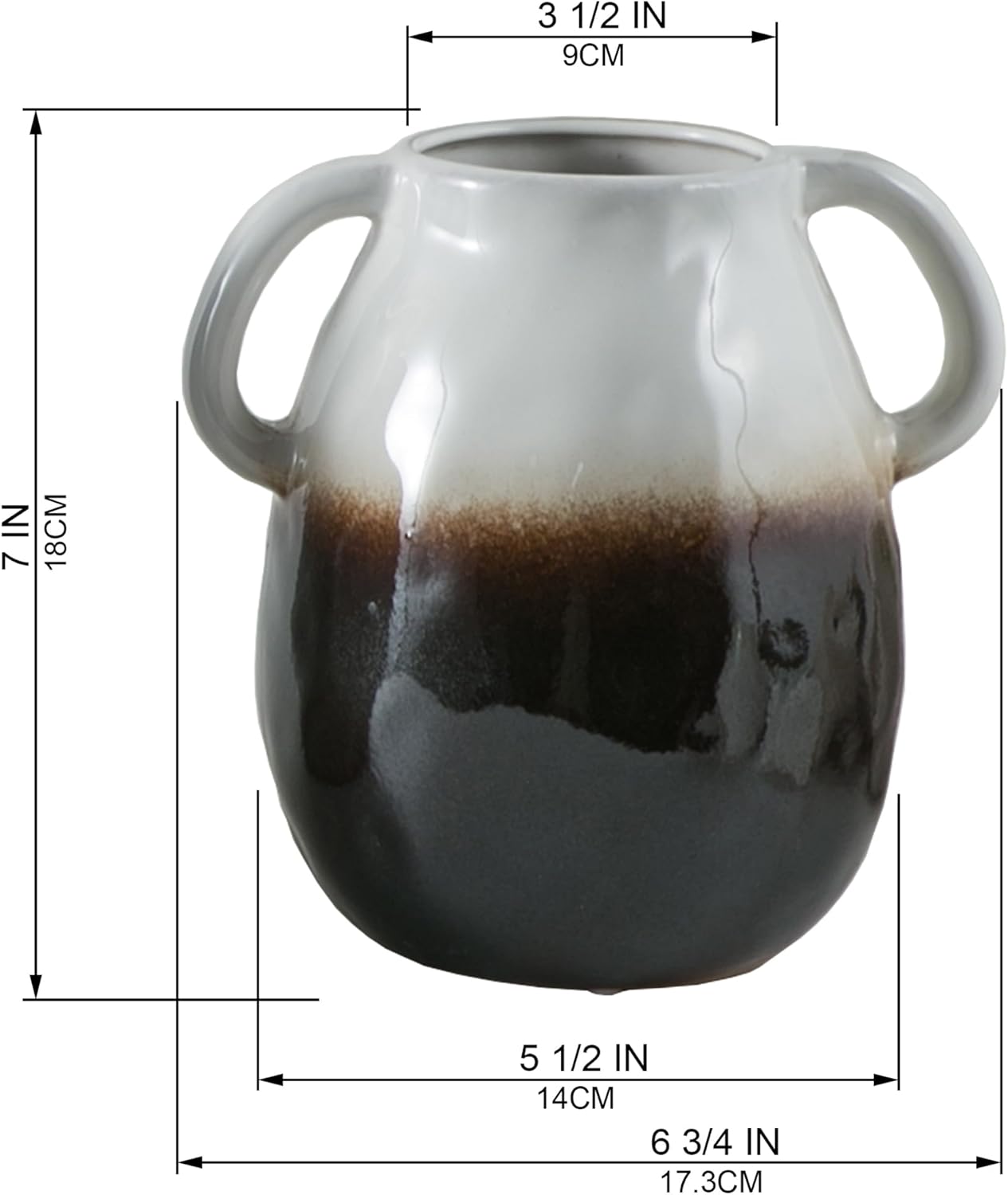 White Gradient Ceramic Vase with 2 Handles, Modern Farmhouse Decor, Rustic Terracotta Pottery, Decorative Flower Vases, Clay Small Vase, Centerpiece for Dining Table - 7 Inch Tall