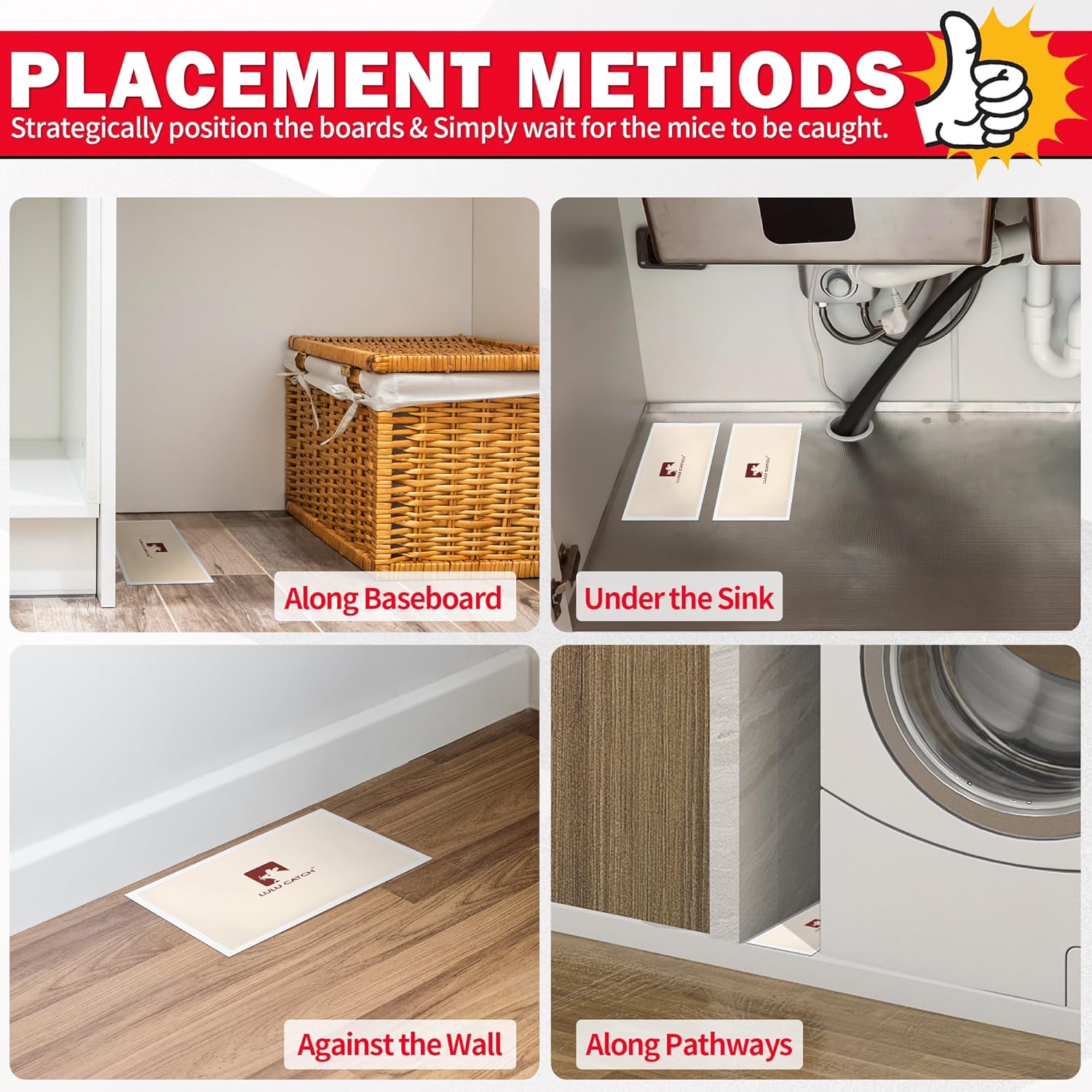 • READY TO USE: No complicated setup! Peel, place, and forget. Position boards along rodent pathways (walls, corners, entry points) or areas with insect activity. The sturdy design ensures they stay sticky for up to a year, saving you time and money. Compact yet mighty, these traps blend discreetly into any space while working tirelessly to guard your home!