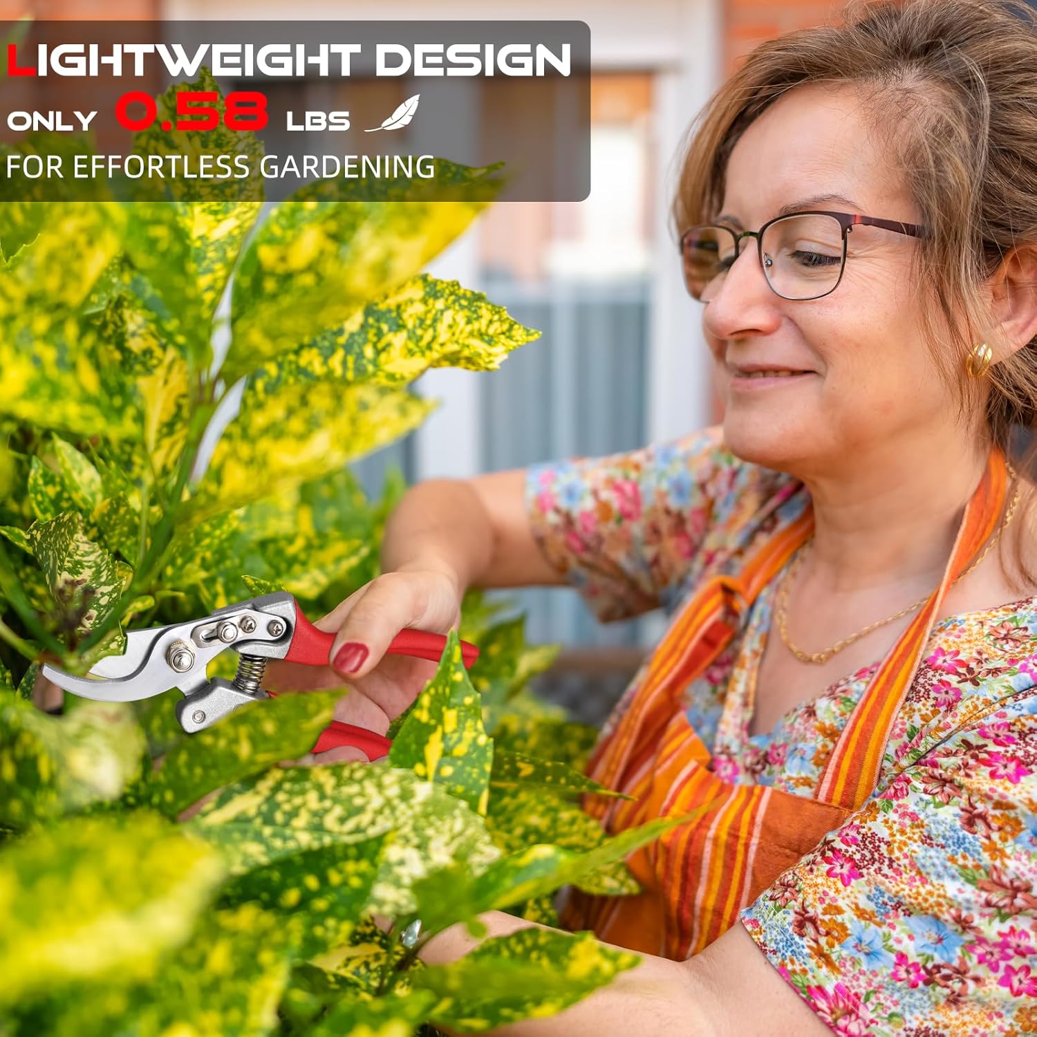 • FEMALE & ELDERLY-FRIENDLY: The ergonomically designed, non-slip rubber handles reduce hand fatigue and ensure a comfortable, stable grip. The cushioned design minimizes wrist and hand strain, making these pruners ideal for long use and for those with arthritis or anyone needing extra comfort
