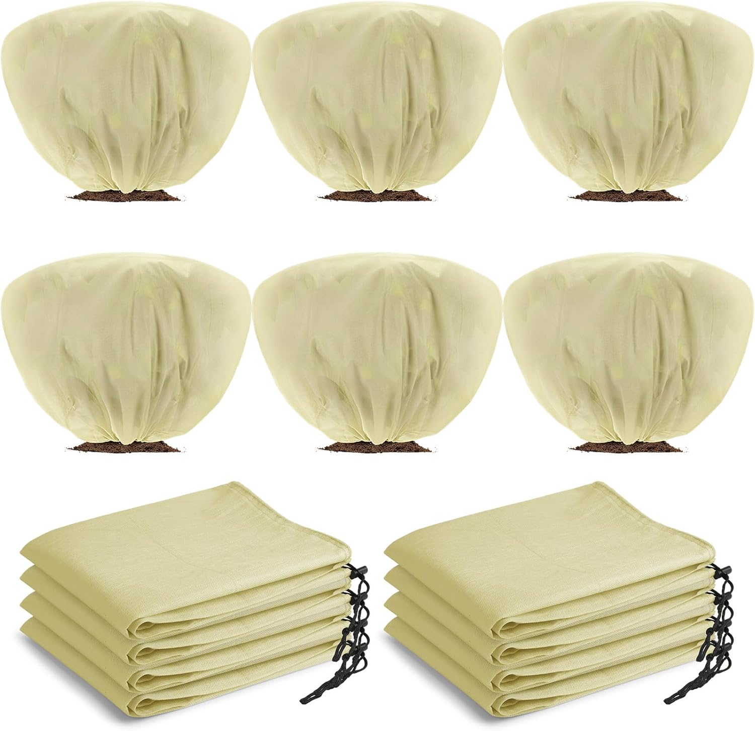 6 Pcs Winter Plant Covers Freeze Protection 39.4x23.6 Inch Horizontal Shrub Tree Rose Plant Protection Bags Frost Blanket with Drawstring for Fall Winter Outdoor Garden Planting (Beige)