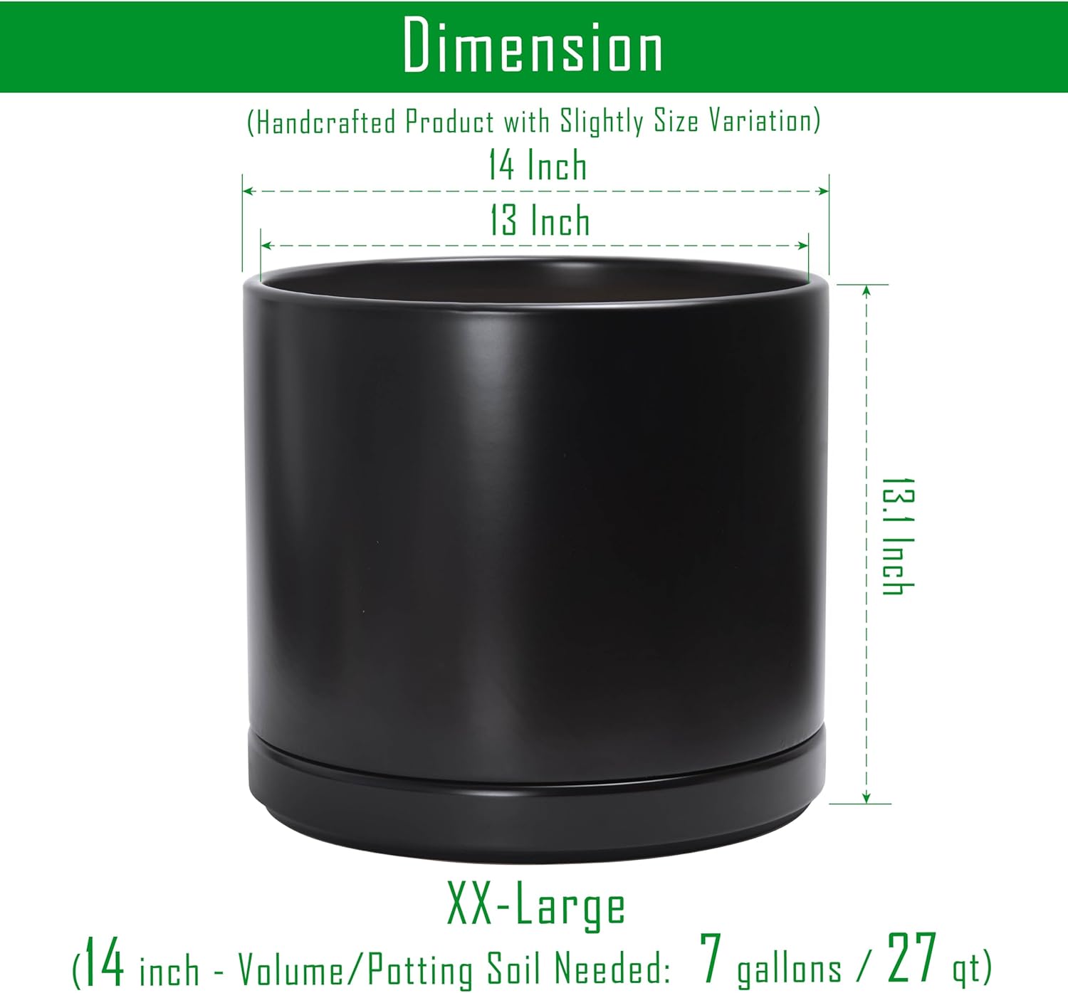 • XXLarge 14 Inch Planter Pot: 14" Diameter x 13.1" H, black color.