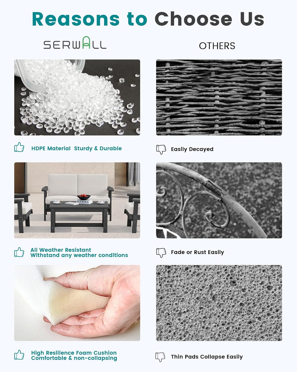 • After-sales Support: We want our customers to be 100% satisfied with serwall outdoor furniture set - you can always come to us for any product questions and product care, we are committed to your satisfaction.