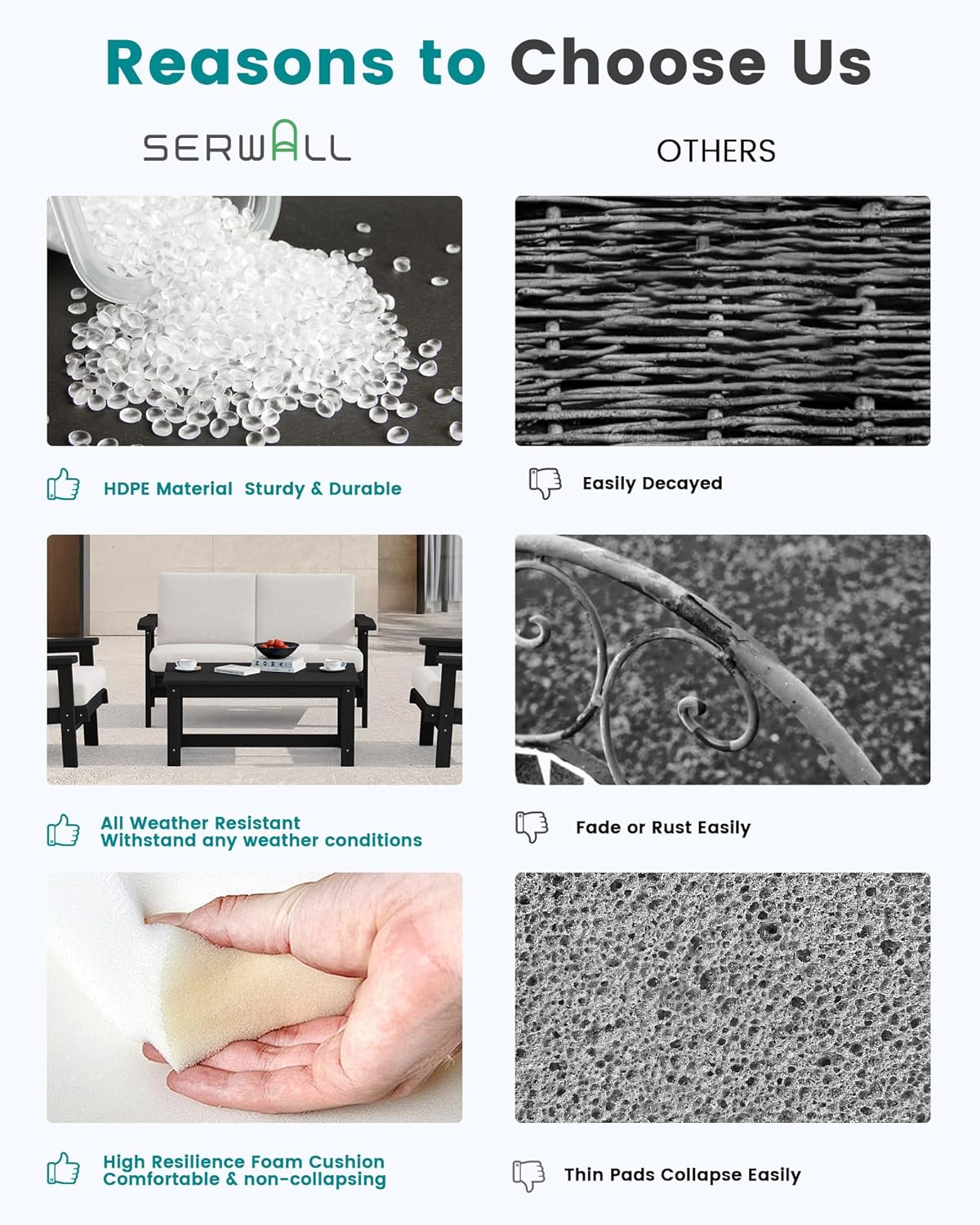 • After-sales Support: We want our customers to be 100% satisfied with serwall outdoor furniture set - you can always come to us for any product questions and product care, we are committed to your satisfaction.