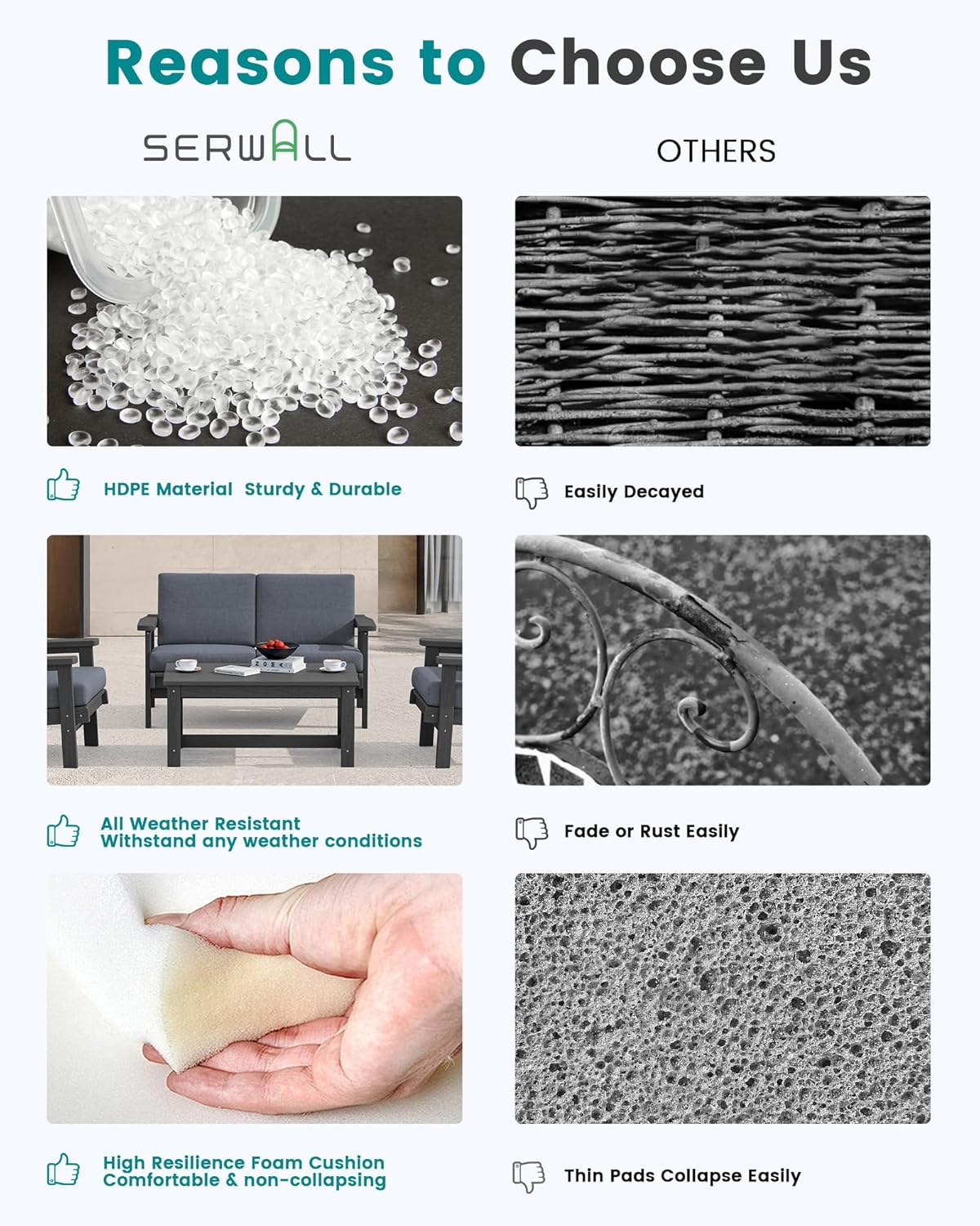 • After-sales Support: We want our customers to be 100% satisfied with serwall outdoor furniture set - you can always come to us for any product questions and product care, we are committed to your satisfaction.