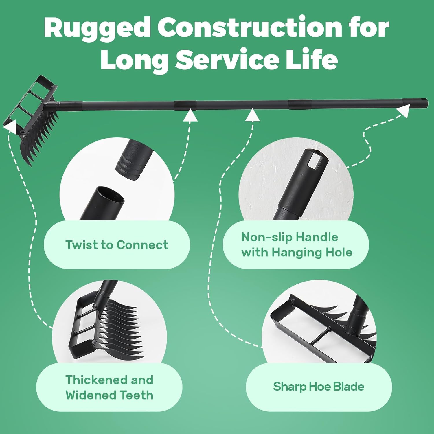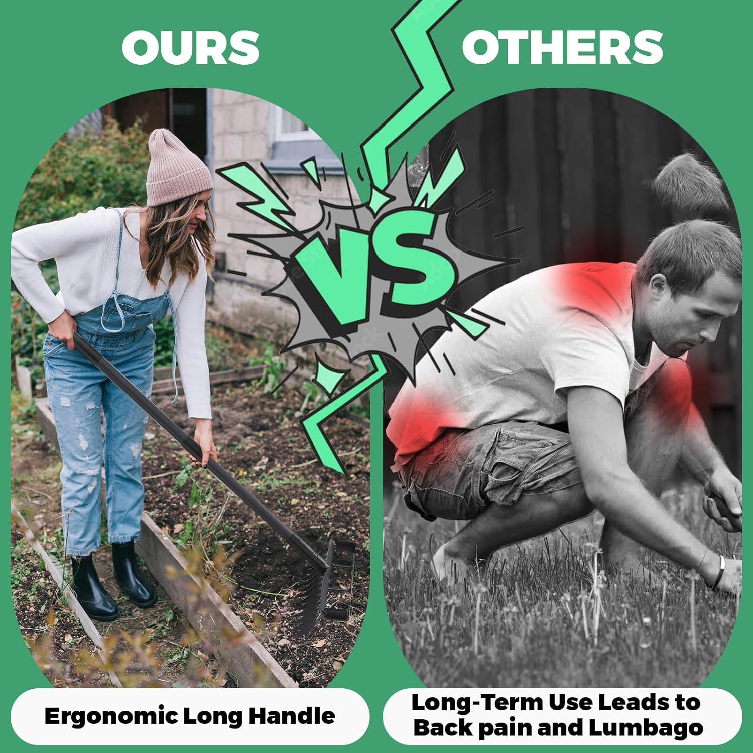 • Versatile Garden Tool: The Weed Puller features a 2-in-1 design with a Hula Garden Hoe and a 12 Tines Rake, making it an essential garden tool for efficient weeding and soil cultivation.