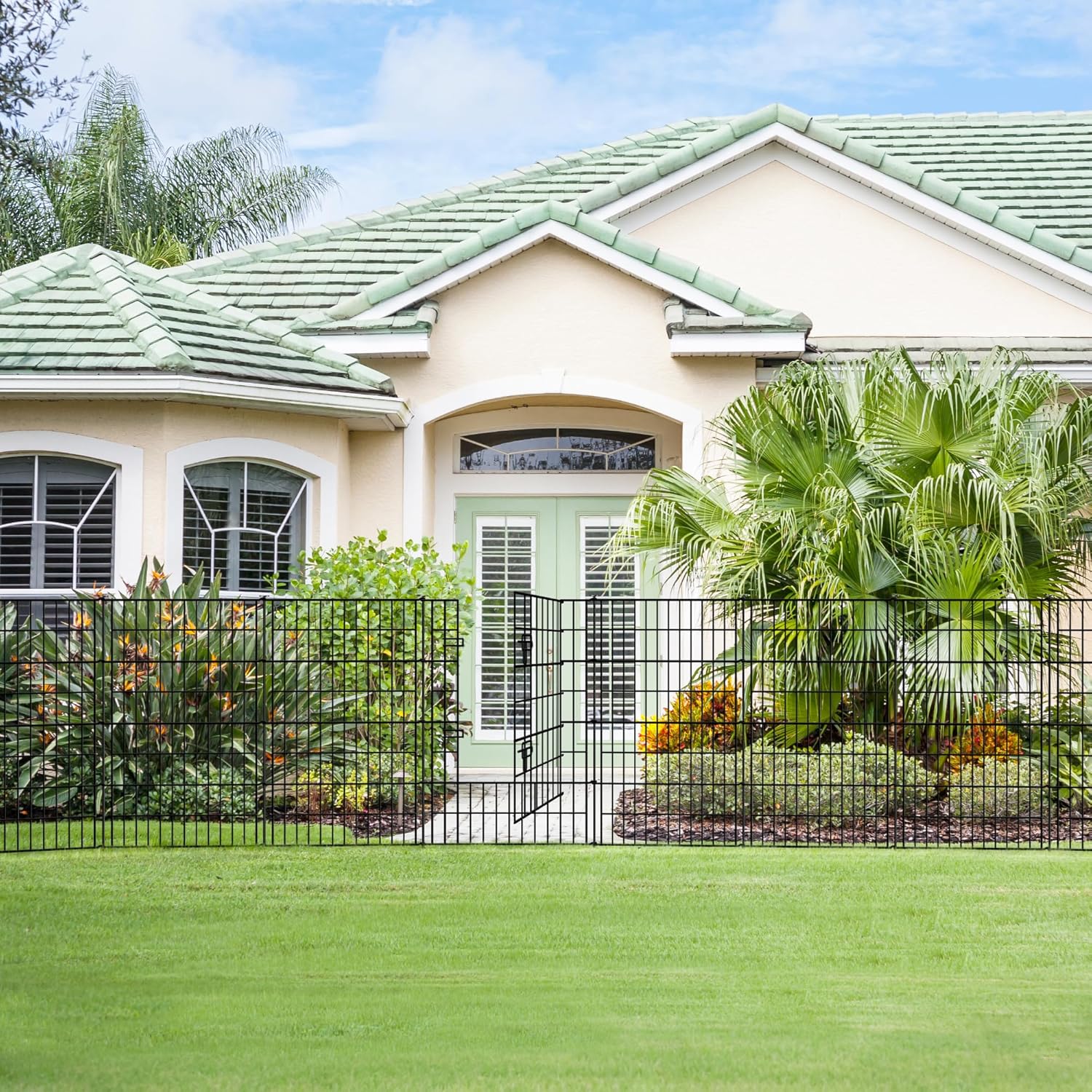 • 【Stylish Design】Our fence outdoor for yard feature a sleek and stylish design that will add a touch of elegance to your outdoor space.The sleek black metal finish adds a modern flair, making it a perfect fit for defining garden borders, creating a safe play area, or keeping pets contained.
